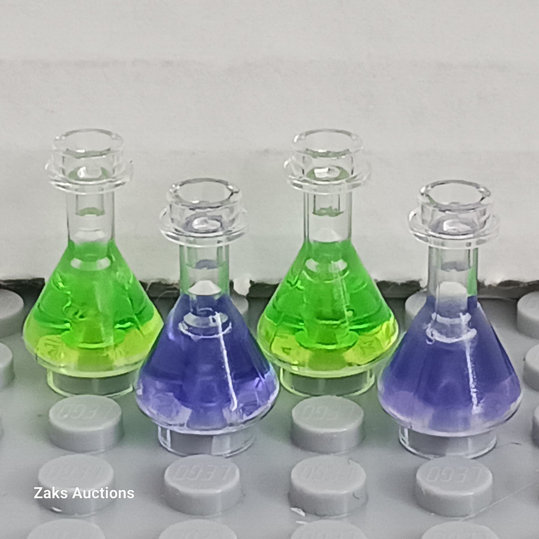 Two Green & Two Purple; Utensil Bottle, Erlenmeyer Flask with Molded Fluid Pattern