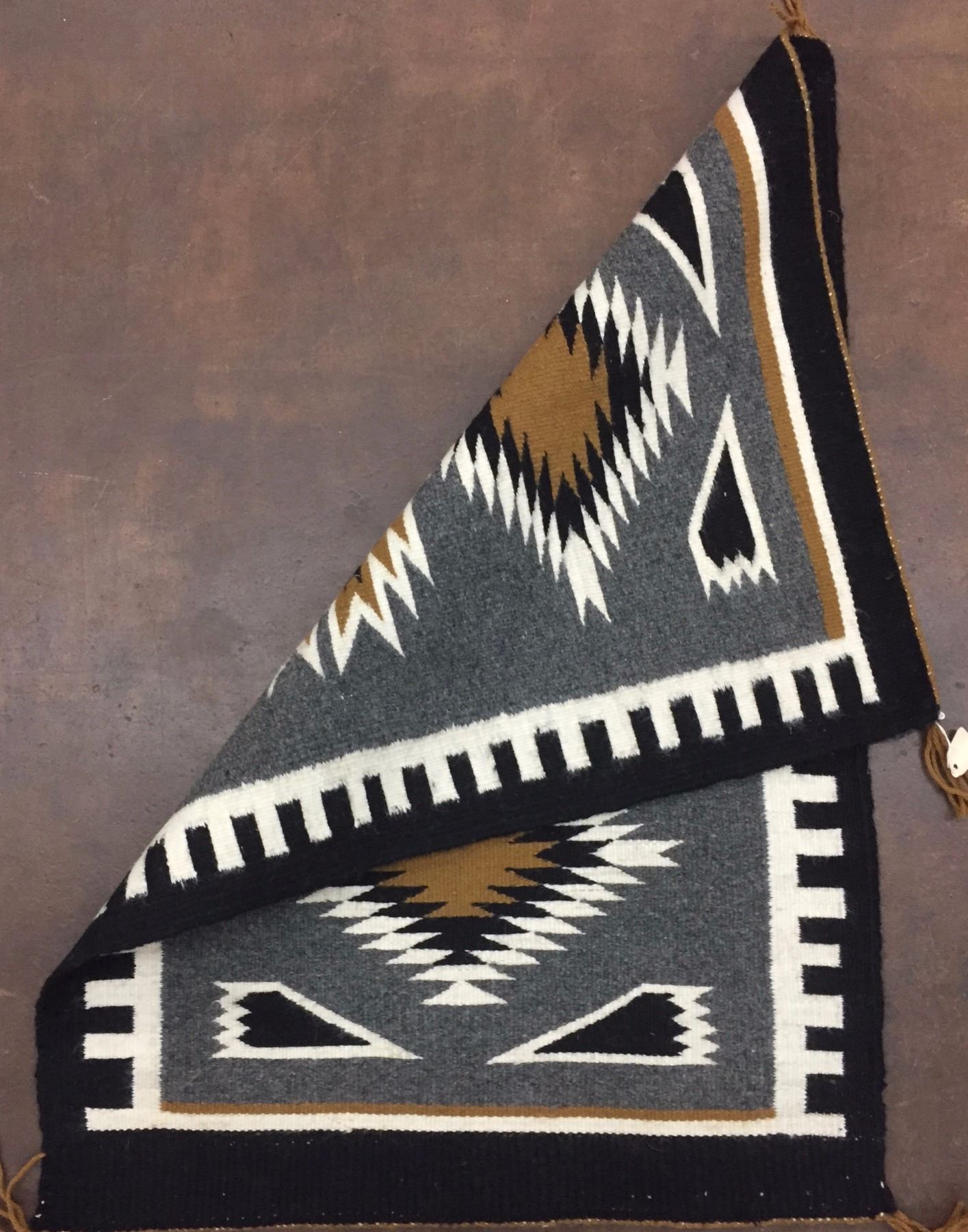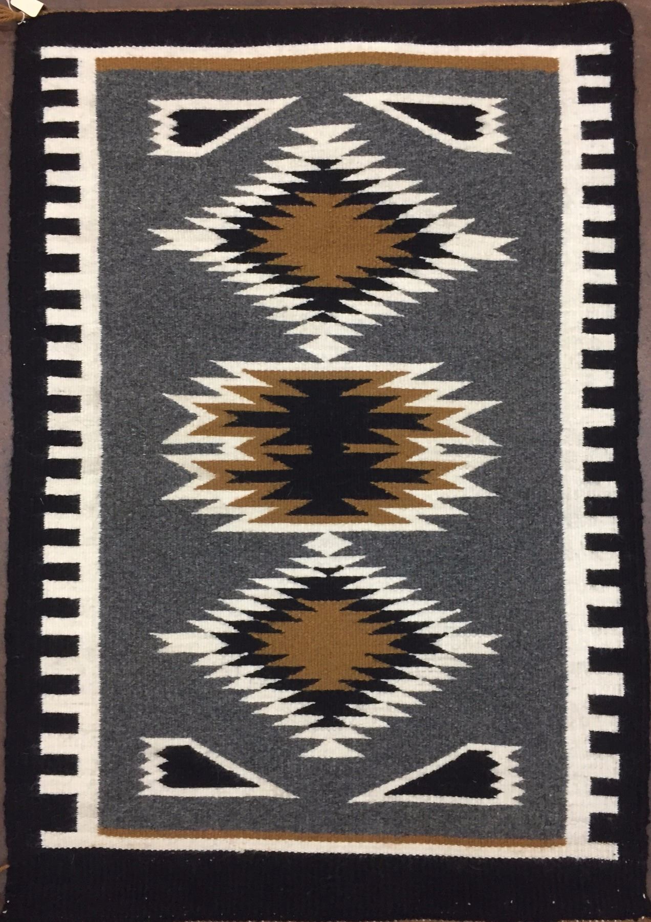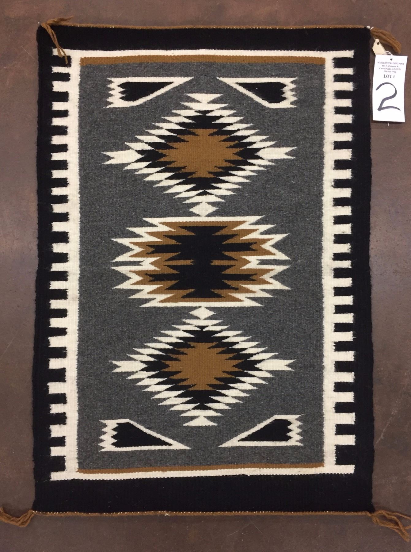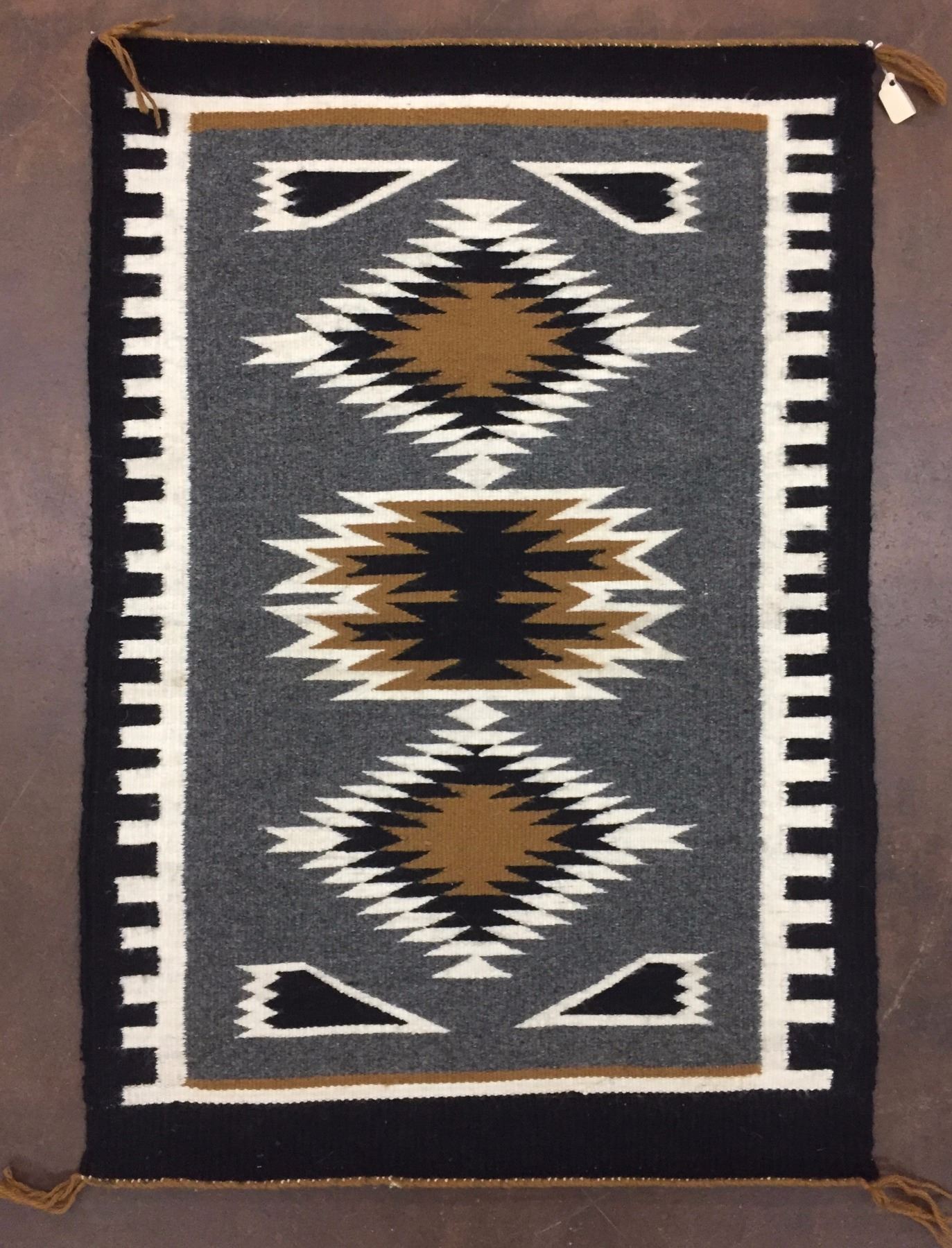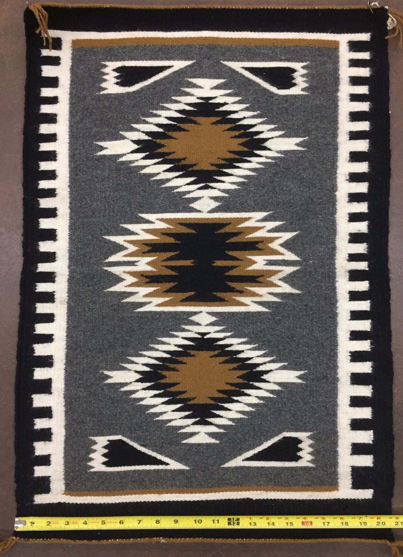 Maker: Unknown Navajo weaver. Approx. Age: Vintage. Size: Measures 21” w x 30” l. Additional Info: Two Grey Hills Navajo textile. Condition: Good for it’s age, normal wear expected. Please look closely at the pictures - they are an important part of our description. Shipping: There will be a $5 handling / packaging fee for shipping this lot. The actual cost of postage will be added on top of that.
