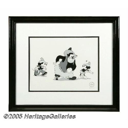 <B>Two Gun Mickey Limited Edition Sericel (The Walt Disney Company, 1994).</B></I> Mickey Mouse rushes in the save Minnie from Peg Leg Pete, in this limited edition sericel. This sericel, titled ""To the Rescue,"" is from Scene 11 of the Disney short, ""Two Gun Mickey"". Disney artists, working from the original animation drawings, have translated this scene using the fine-art screen-printing process of color separation known as serigraphy. Limited to an edition of 5,000, this sericel has an image area measuring 13"" x 10"", and is in Excellent condition. This lot also includes a certificate of authenticity. <BR><BR><B>Important notice:</B> Heritage usually auctions material at the rate of 200-250 lots per hour. On some occasions eBay Live bid software or the Internet may not be able to keep up with the pace of the auction. We recommend placing a realistic absentee bid now as insurance to avoid disappointment. Occasionally the auctioneer may eliminate or reject an eBay Live bid, and the auctioneer may also reopen a lot after the close of the eBay live bidding (usually because we missed an audience bid), and may reject your bid even if it shows you as the winning bidder. By bidding via eBay Live, you agree that Heritage may award the lot to another bidder at its sole discretion under the circumstances described above or any other reasonable circumstances. Since eBay bids are not shown to us until we open the lot on the floor, we treat those bids just like floor bids. In most cases the floor responds before the eBay bid is presented to us, due to Internet lag time, so for consistency we have made it a policy that floor bids are always considered first over tie eBay live bids. Also please note that all Heritage lots purchased through eBay Live carry a 20% Buyer's Premium. Please make sure you read the Terms and Conditions before you bid. This lot is being auctioned in conjunction with a live floor auction by Heritage Galleries & Auctioneers. All final auction and invoi