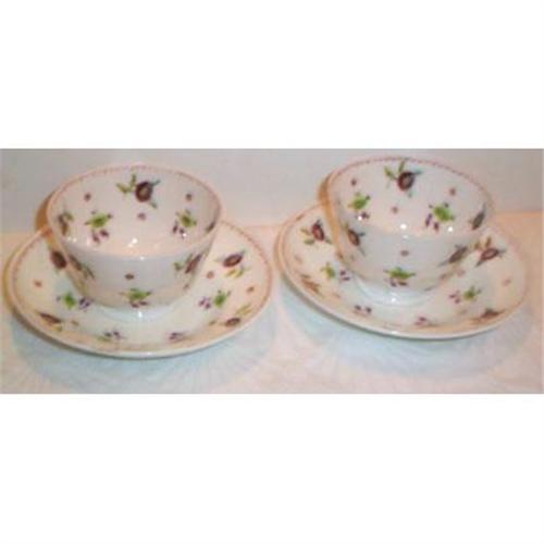 We are offering you two (2) fantastic Hand Painted Handless Cups and Saucers all for one money. They are both hand painted with a lovely floral design and each is in SUPERIOR condition with no chips, cracks, dings or hairlines. They cups masure 3.50" in diameter and stand 2.25" tall and each saucer is 5.50" in diameter and stands 1" tall. They are unmarked on the bottom but definitely English.
