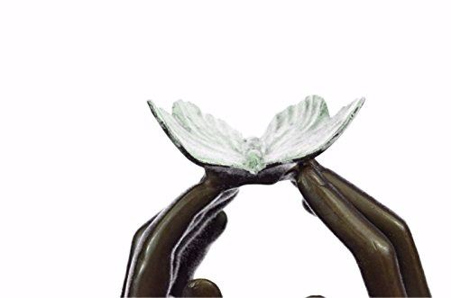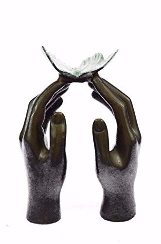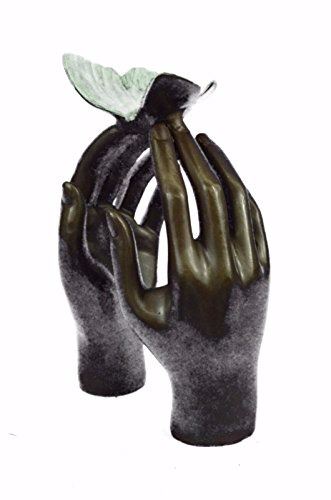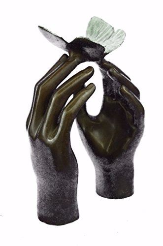 This Interesting Bronze Sculpture Of A Butterfly Sitting On Top Of Two Hands Was Done By Renowned French Artist Milo. Milo Is A Self-Taught Artist With A Love Of Nature And A Passion For Capturing It In Bronze. The Notion Of This Sculpture Forms From A Native American Legend Or Story Of The `Children Who Refused To Walk'. In Order To Get The Babies To Move From Four Legs To Two A Handful Of Pebbles Were Thrown Into The Air And As They Scattered They Changed Into Beautifully Colored Butterflies. The Children Were So Delighted They Jumped Up And Began To Chase The Butterflies. Bronze Dimensions: Height 9 X Width 6 inches. Weight: 6 Lbs.