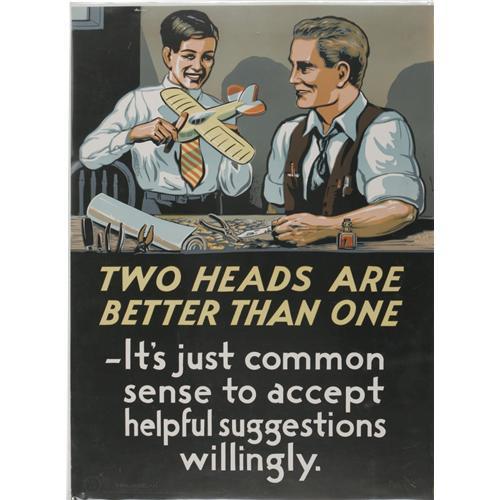 <B>"Two Heads Are Better Than One..." Propaganda Poster.</B></I> Chet Miller's poster is a great reminder on how to cooperate. This fun-filled poster has an approximate overall size of 20" x 27", and is in Excellent condition.<BR><BR><b>Shipping:</b> Flat Material, Large (<a target="_blank" href="http://www.heritageauctions.com/common/shipping.php">view shipping information</a>)