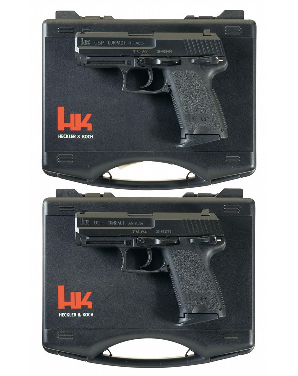 Two Heckler & Koch USP 45 Compact Semi-Automatic Pistols with Cases -A) Heckler & Koch USP 45 Compact Pistol