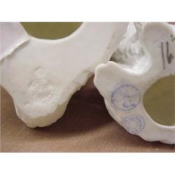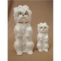 Two Heubach German porcelain dog figurines, seated dog begging, 5" high and 7" high, Heubach mark on smaller dog