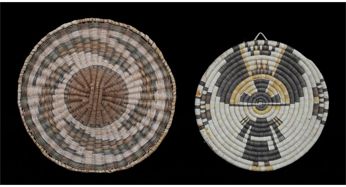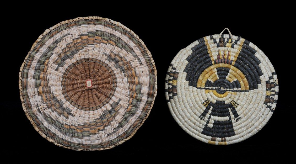 Two Hopi Basketry Trays - Kachina Motif 10" D. Good Condition with Minor Rim Loss and an Early Tray ca. 1920 13" D. Good Condition