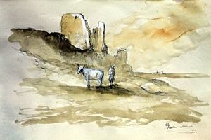 Watercolor Painting on Paper, bearing a signature, Size Approx .14 x 11