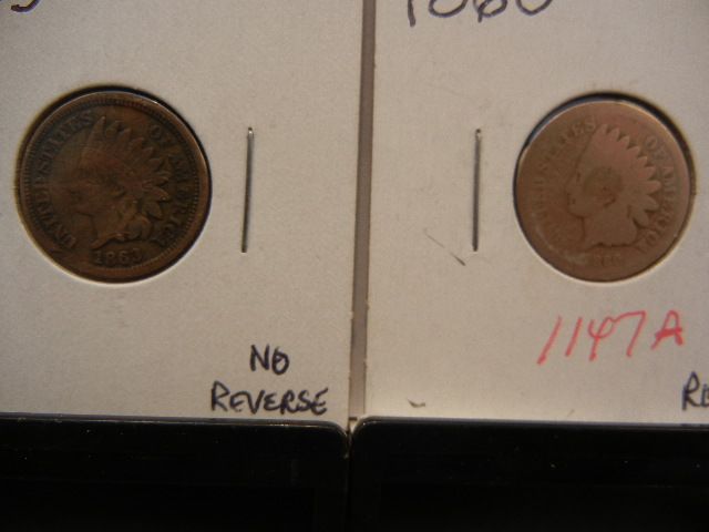 Two Indian Head Cents 1860 & 1863 No Reverse