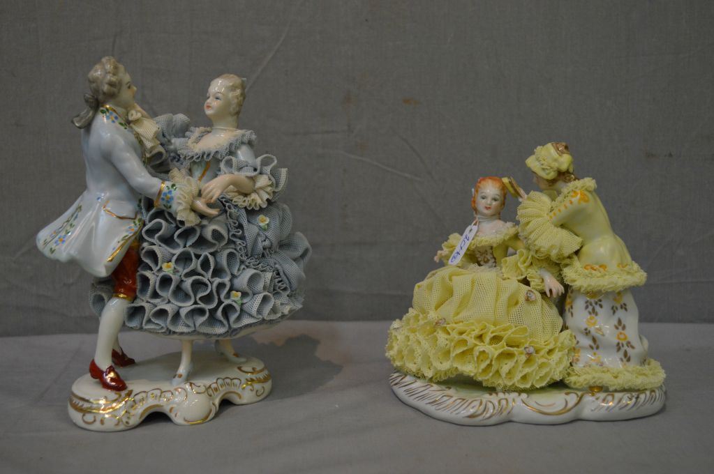 THIS ITEM NOT AVAILABLE FOR SHIPPING. LOCAL BIDDERS ONLY. Two Irish Dresden figurines including Vienna waltz 7" in height and Final Touch