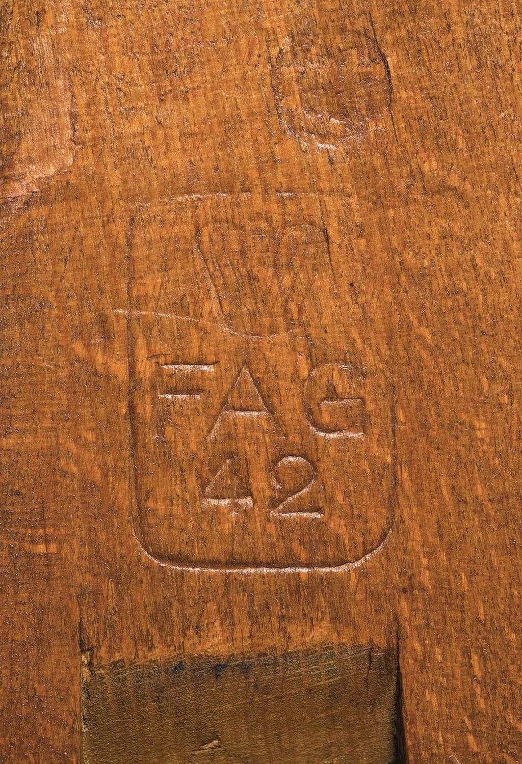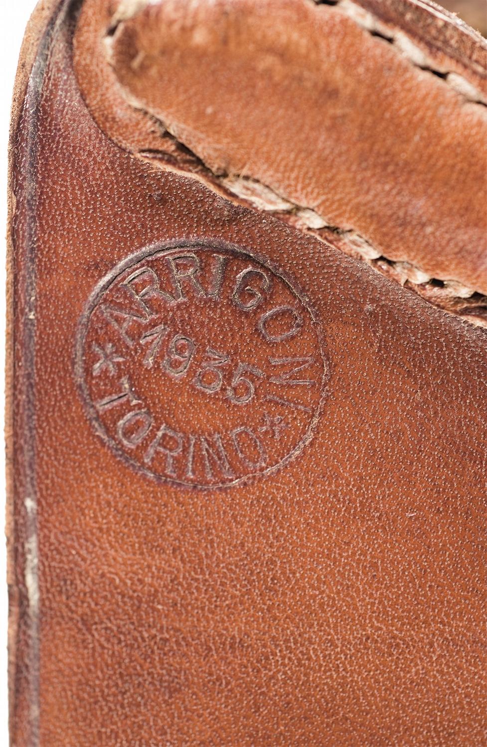 Fixed sights on a barrel marked "942-XX / GARDONE VT / SM7204". The left side of the buttstock is marked with a boxed "crown / FAG / 42" cartouche and the serial number. Features a folding bayonet. Complete with a leather scabbard stamped "ARRIGON / 1935 / TORINO".