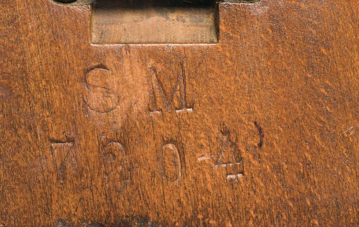 Condition: Fine. The carbine retains 50% original blue finish with a smooth brown patina on the barrel, scattered blue finish on the receiver mixed with smooth gray and almost all of the finish on the magazine housing, (bottom plate absent). The stock is very good with scattered minor dings, dents and scratches. Crisp and clear markings highlighted in white. The action is fine.