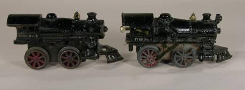 Two Ives cast iron train engines, 6 inches long, Good Cond.
