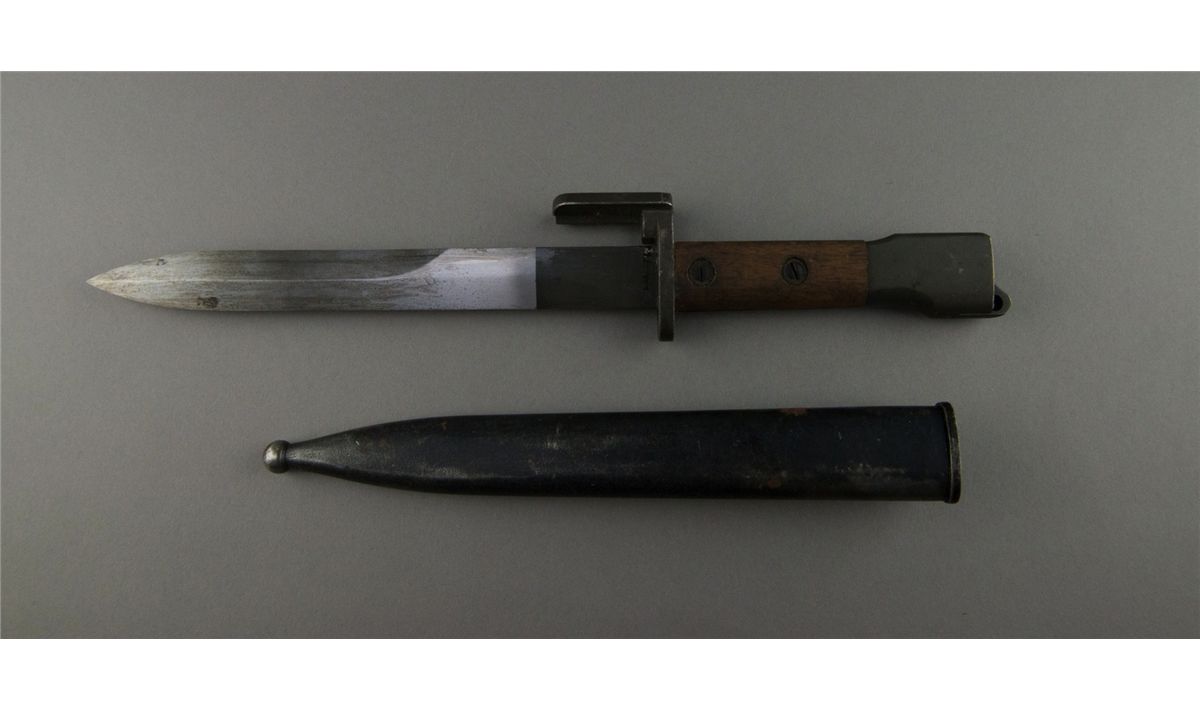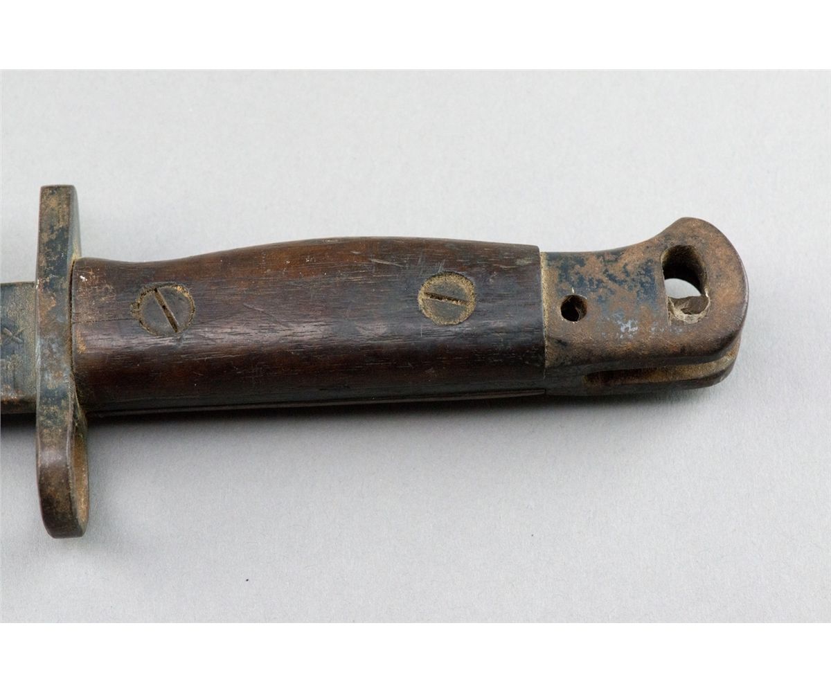 Two Antique Japanese army knives one from WW2 and the other dated 1907; L: 33 cm, W: 3 cm, 472 grams; Provenance: Ma Collection Toronto