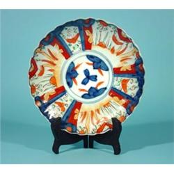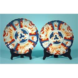 Two Japanese Imari plates, contoured edges, ca. 1900, diam. 24,5 cm.