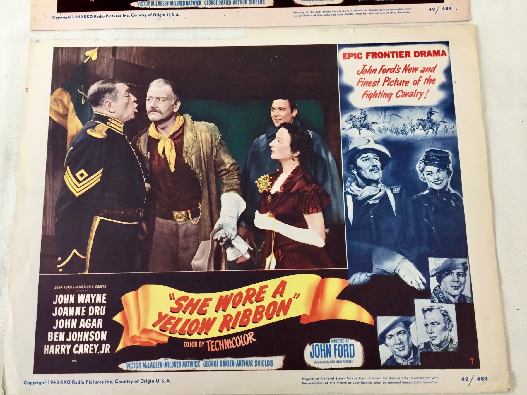 Description: Presented for sale in this lot are two different Lobby Cards featuring John Wayne in the movie "She Wore a Yellow Ribbon" in Technicolor.