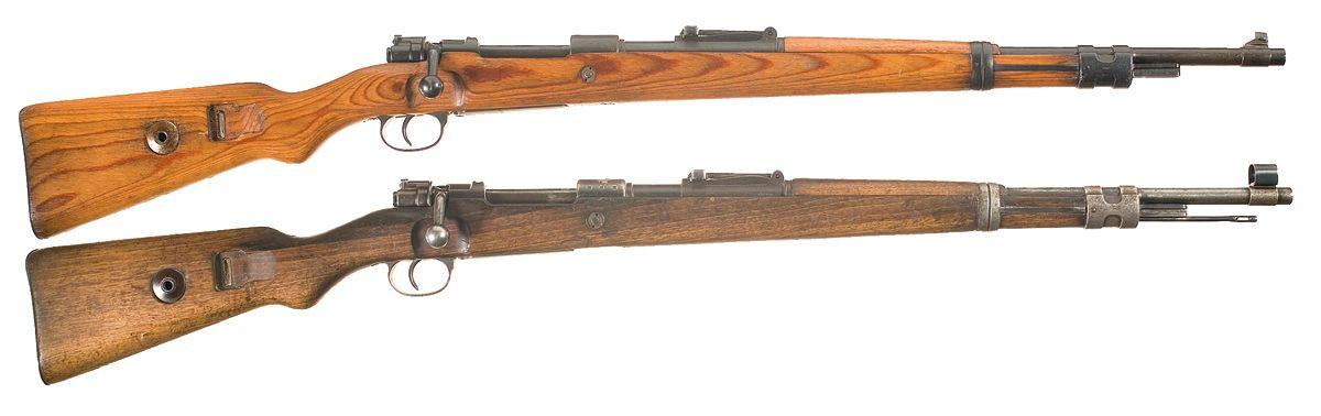 A) Converted to 7.62mm for use by the Army of Norway. Blade and tangent sights, with "KAL 7.62 MM" and "HAER -81561" added to the barrel and chamber, along with standard Nazi proofs. Smooth stock, with a matching numbered buttplate.