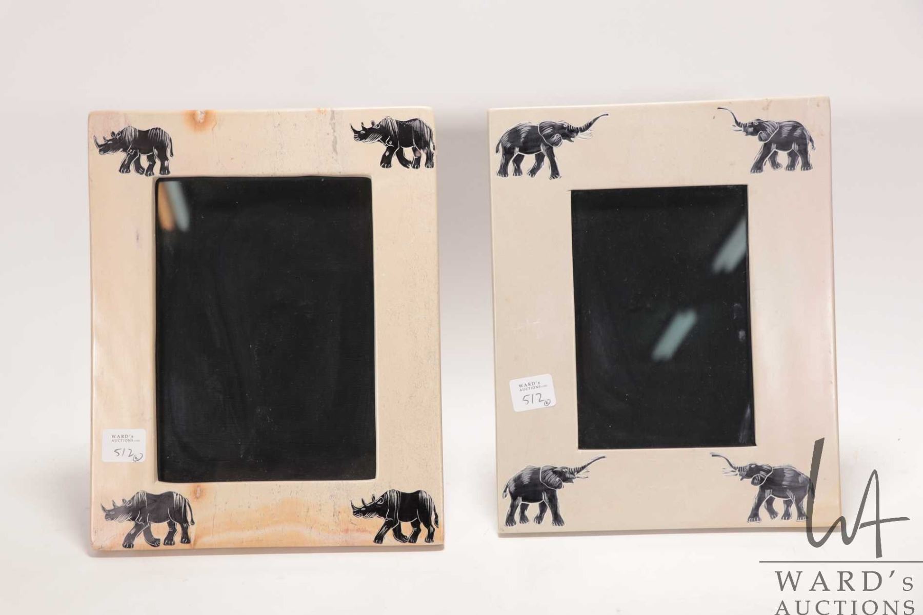 Two Kenya stone carved picture frames, each holds 4" X 6" photo and each 8" X 10" overall dimensions