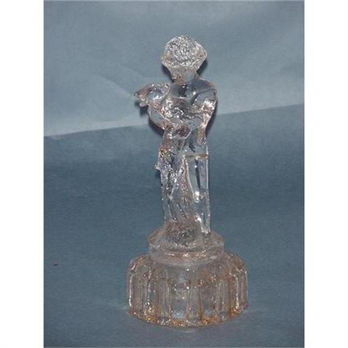 A Cambridge glass flower frog, 9" tall, a young boy holding a small goat, mamed the two kids flower frog with a round base. In very good condition, this is a relatively uncommon piece.(2)