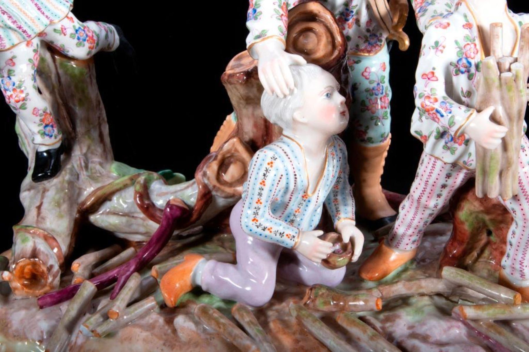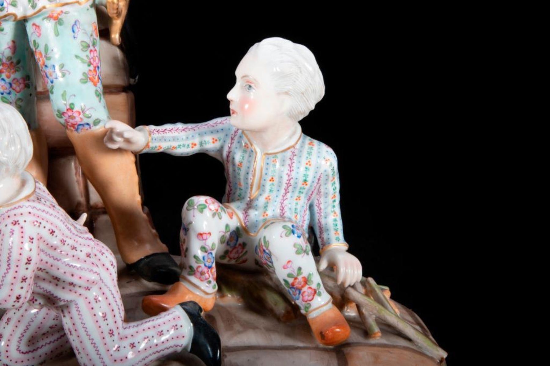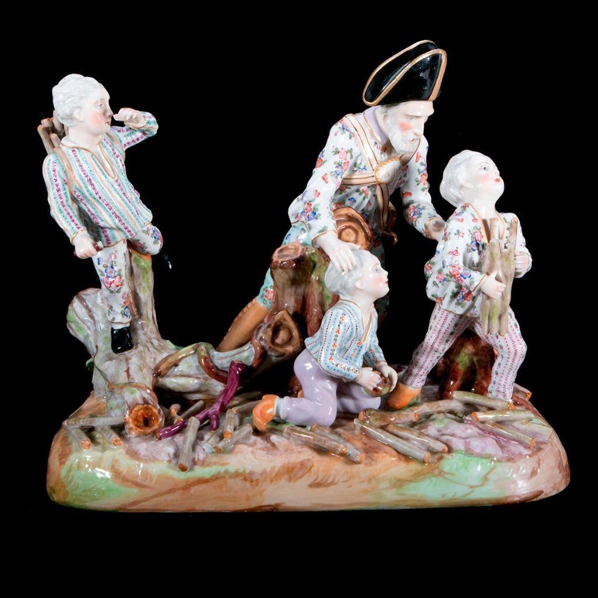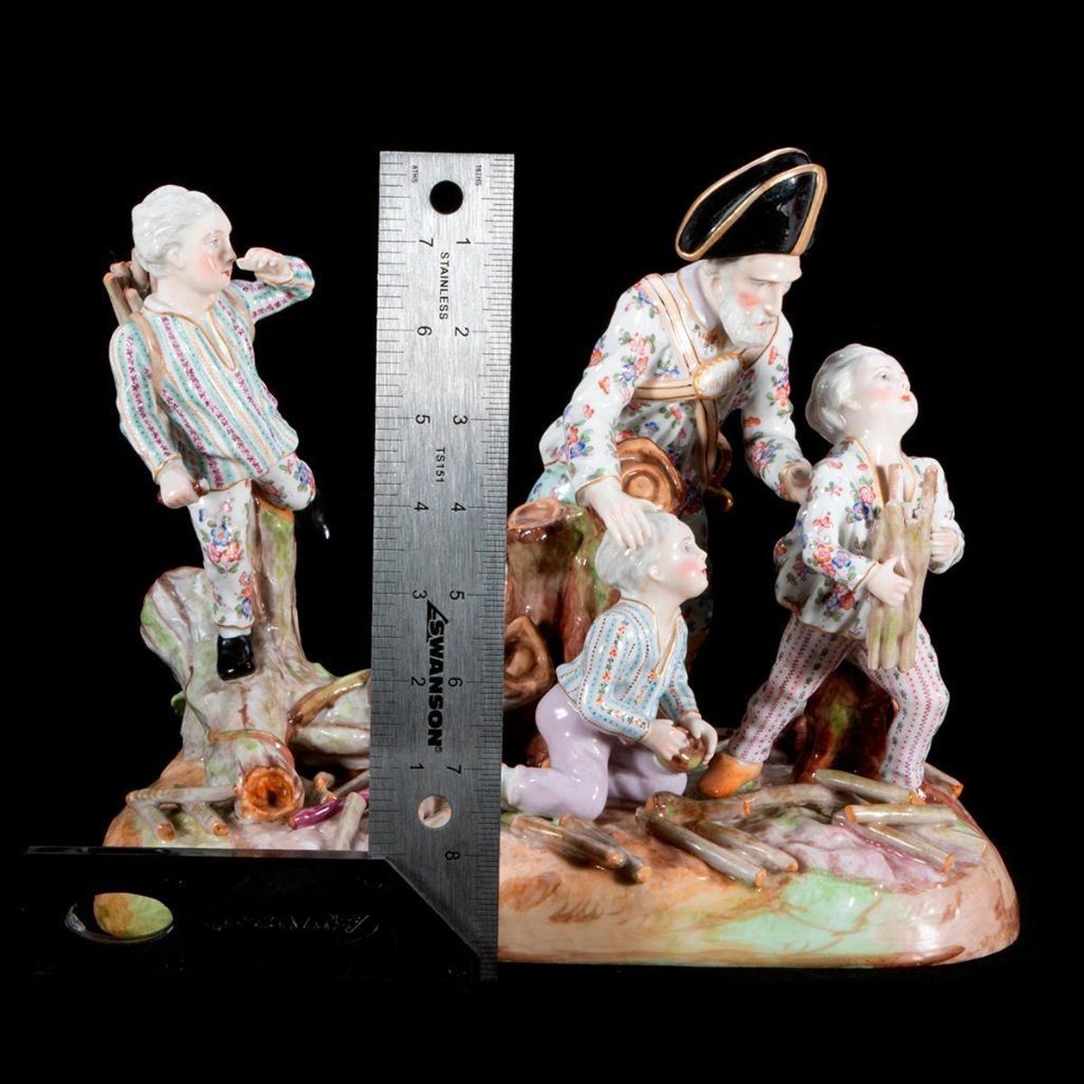 Two Meissen Figural Groups, Boys collecting wood, Boys having a lesson. Largest: H-11", W-11.25", D-7.5". Condition: Some losses