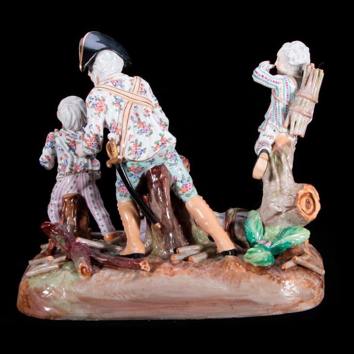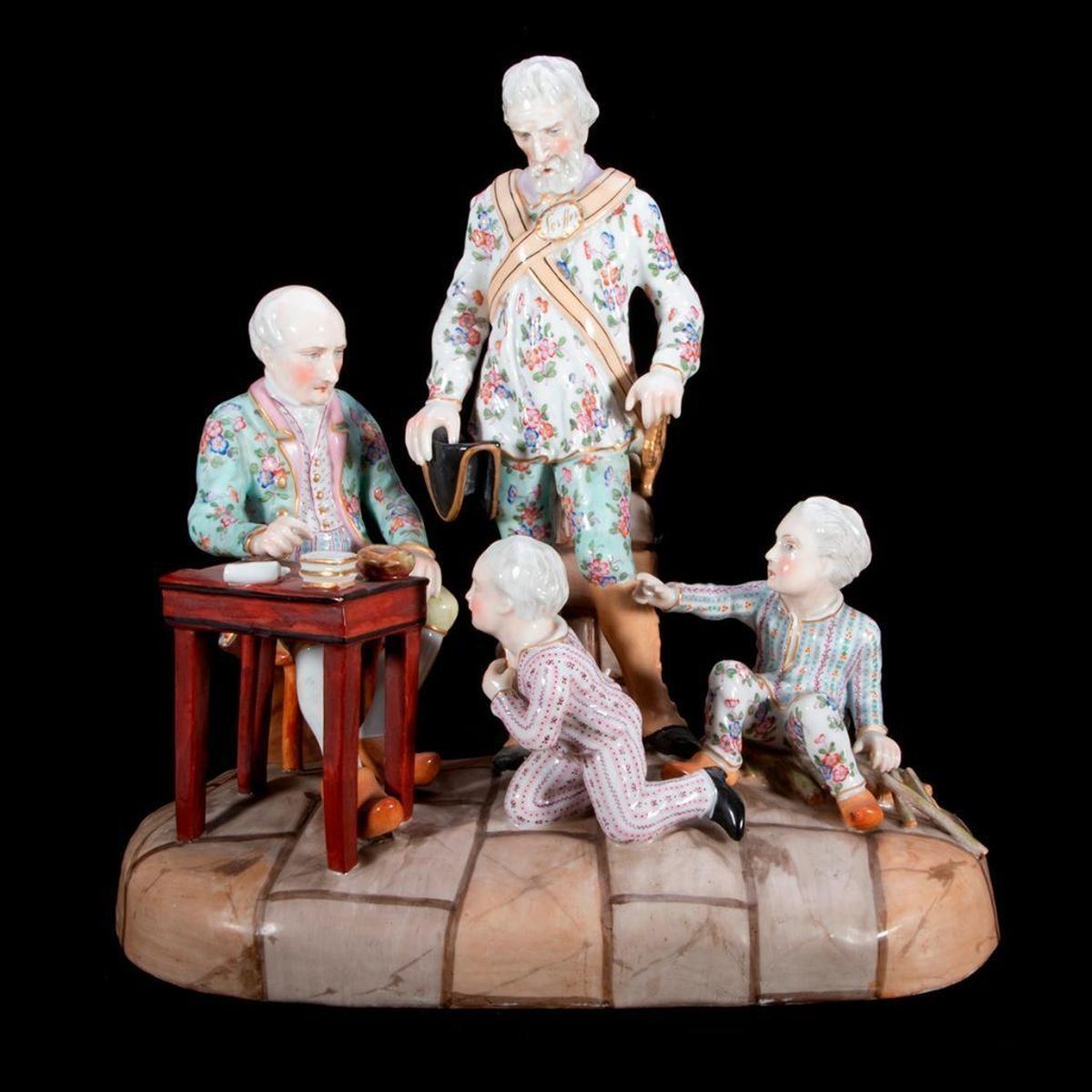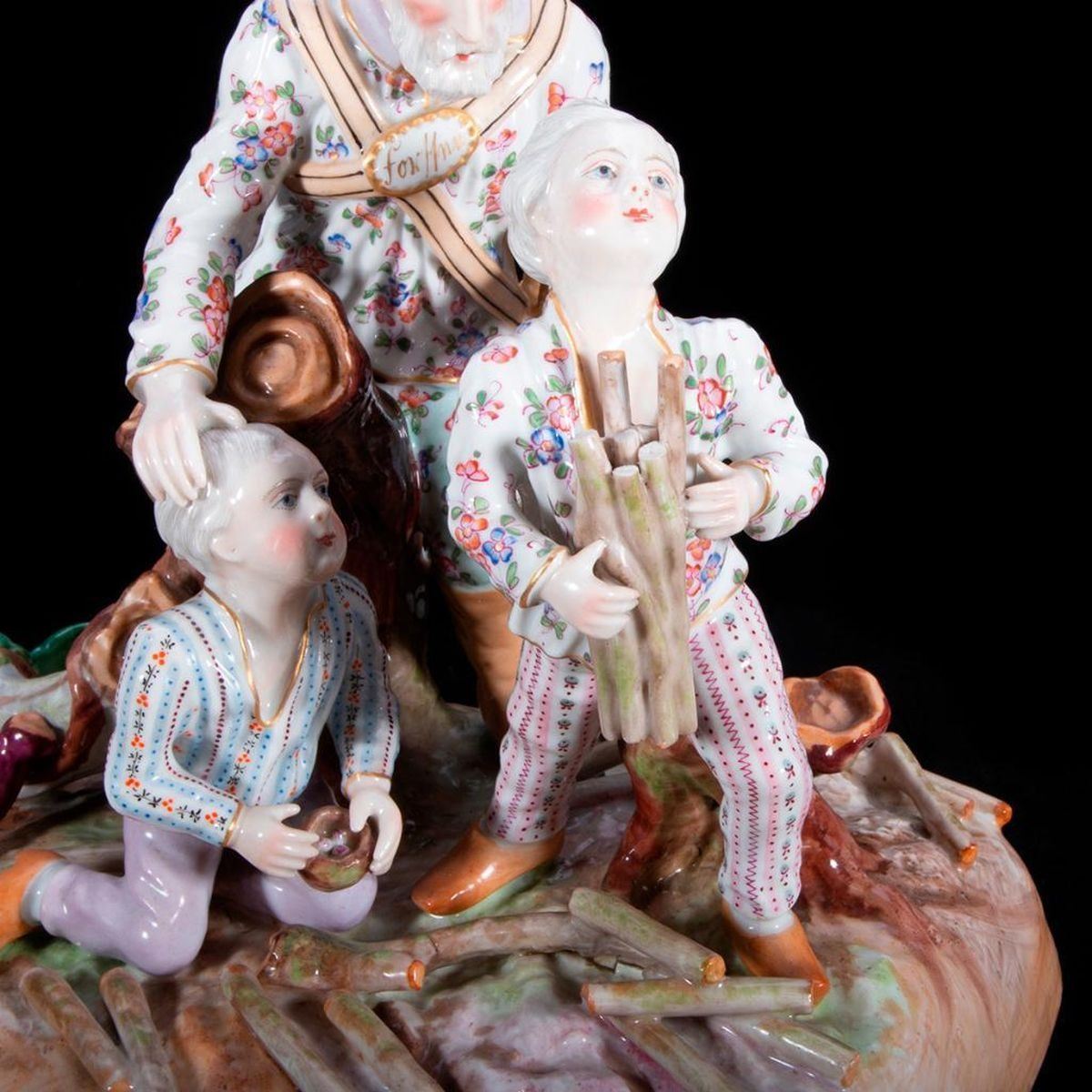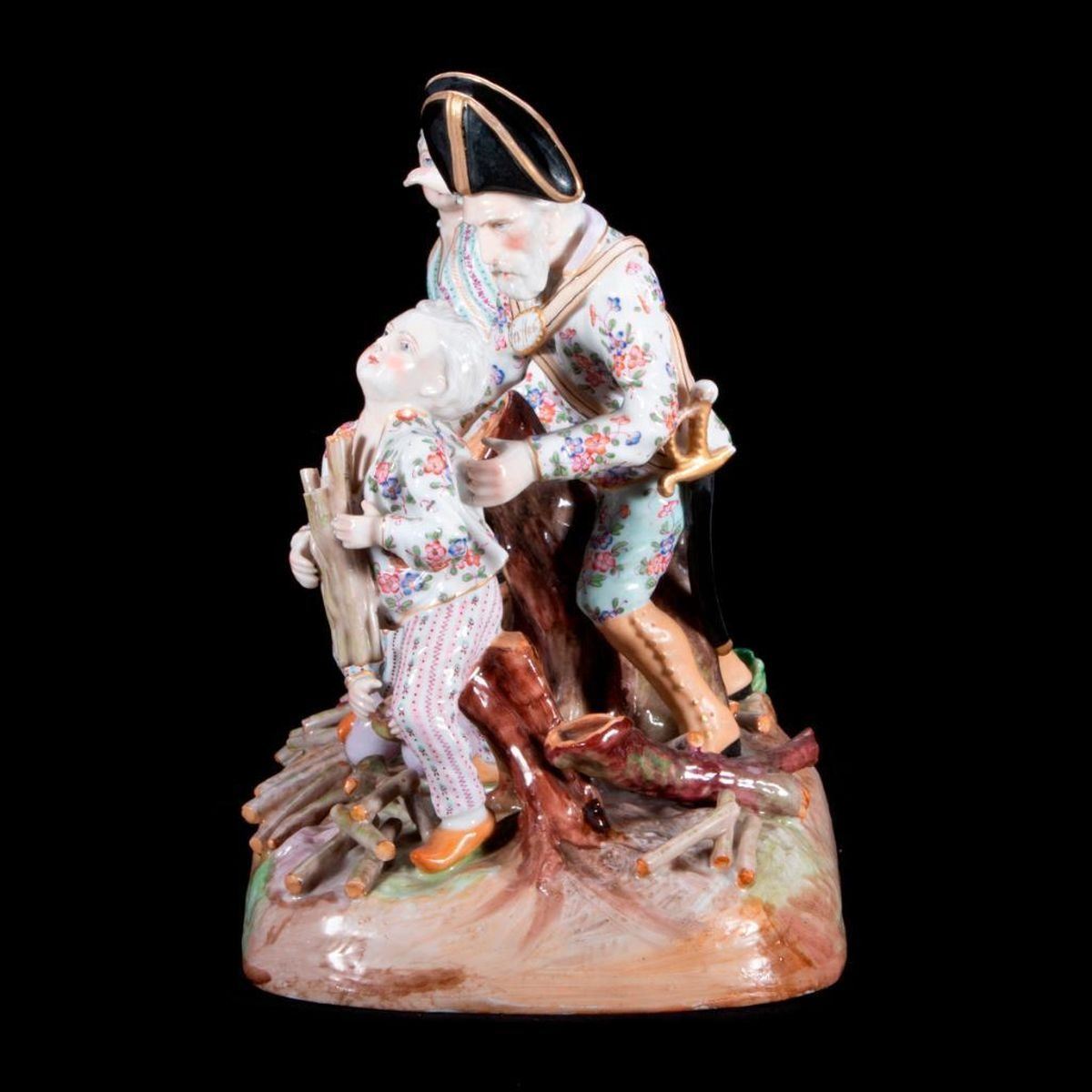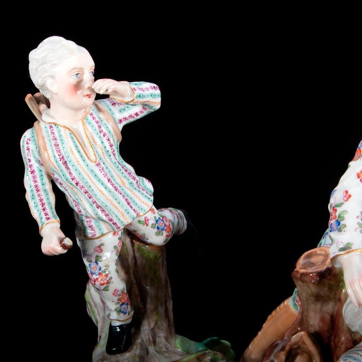 Two Meissen Figural Groups, Boys collecting wood, Boys having a lesson. Largest: H-11", W-11.25", D-7.5". Condition: Some losses