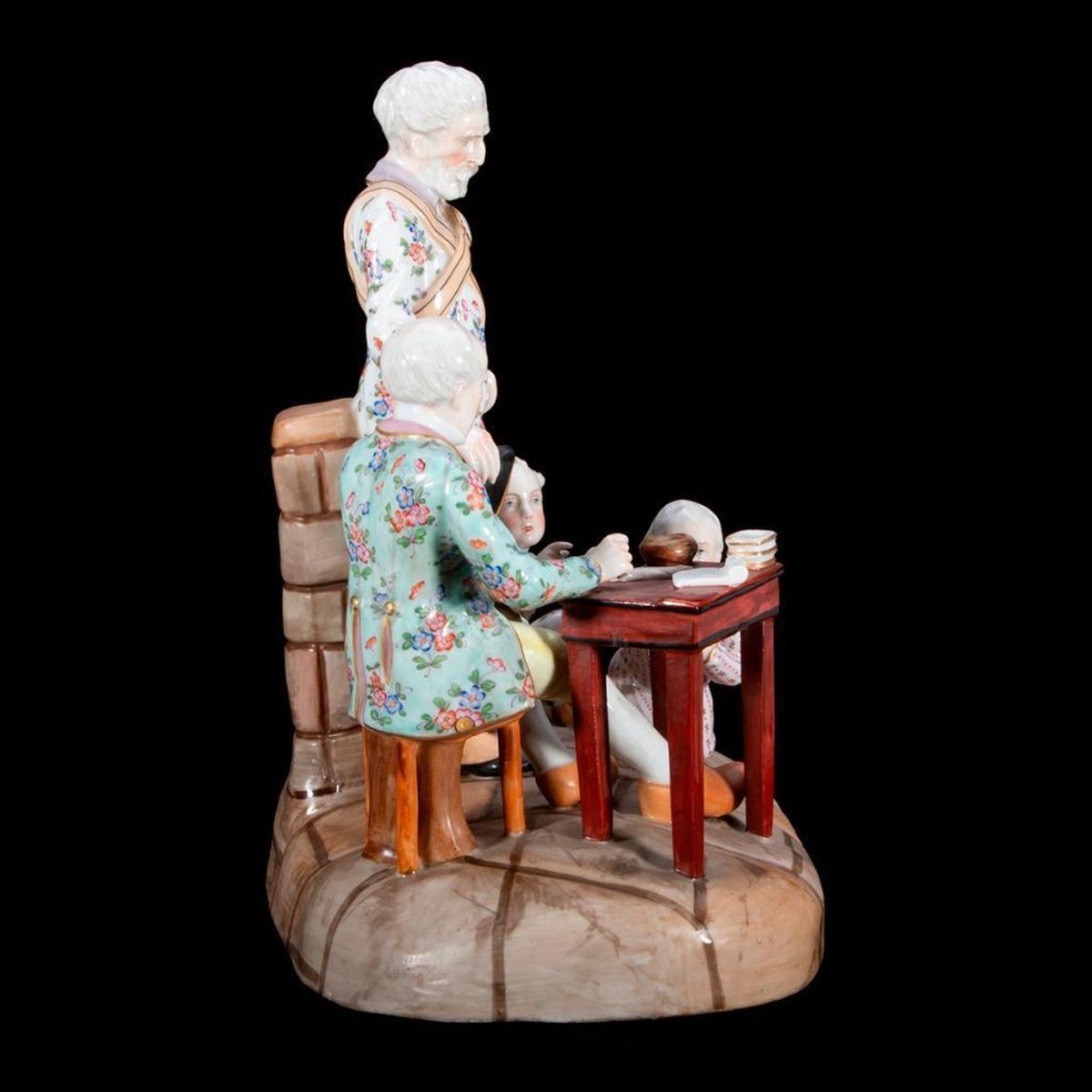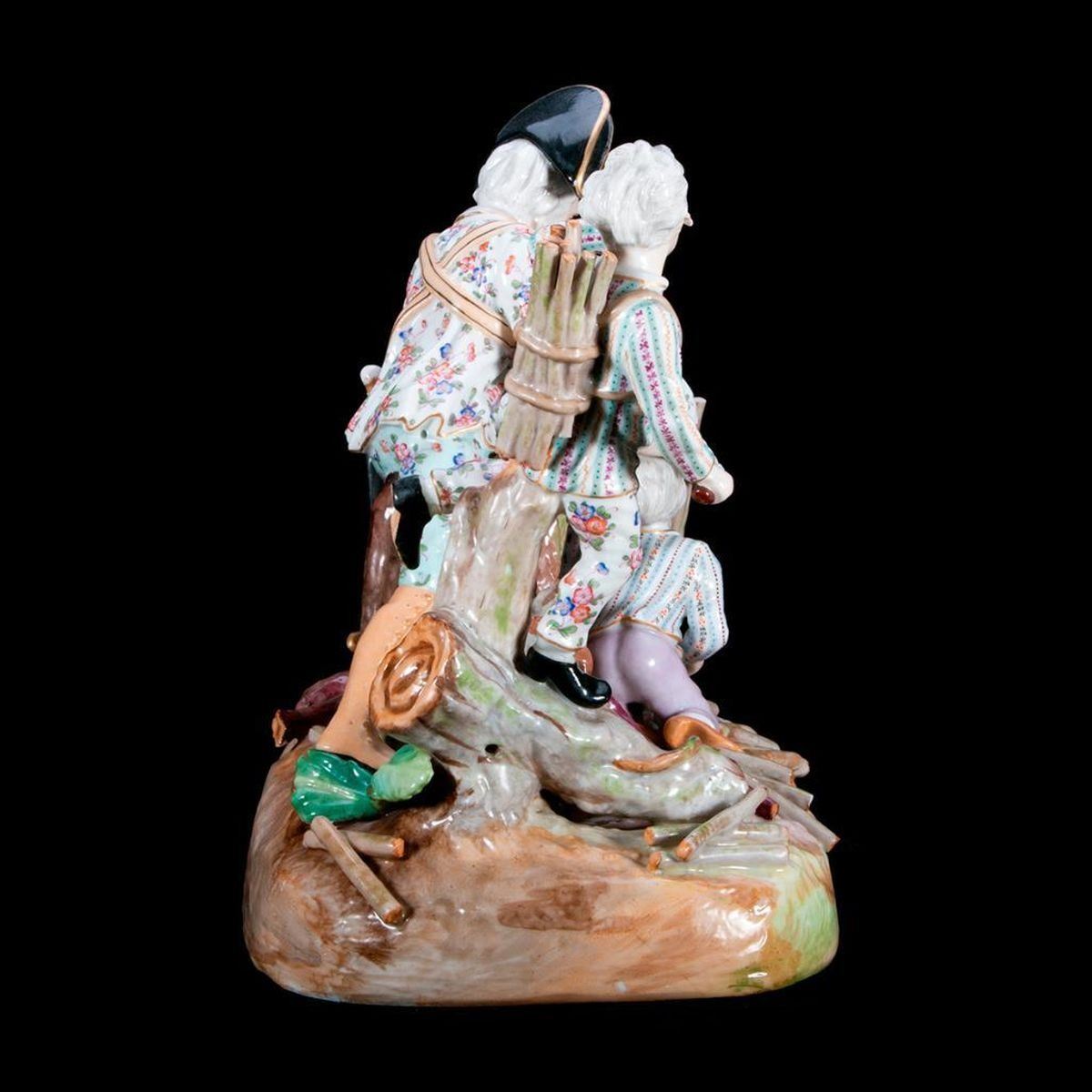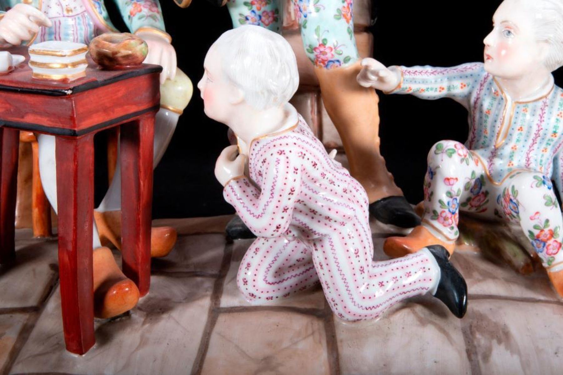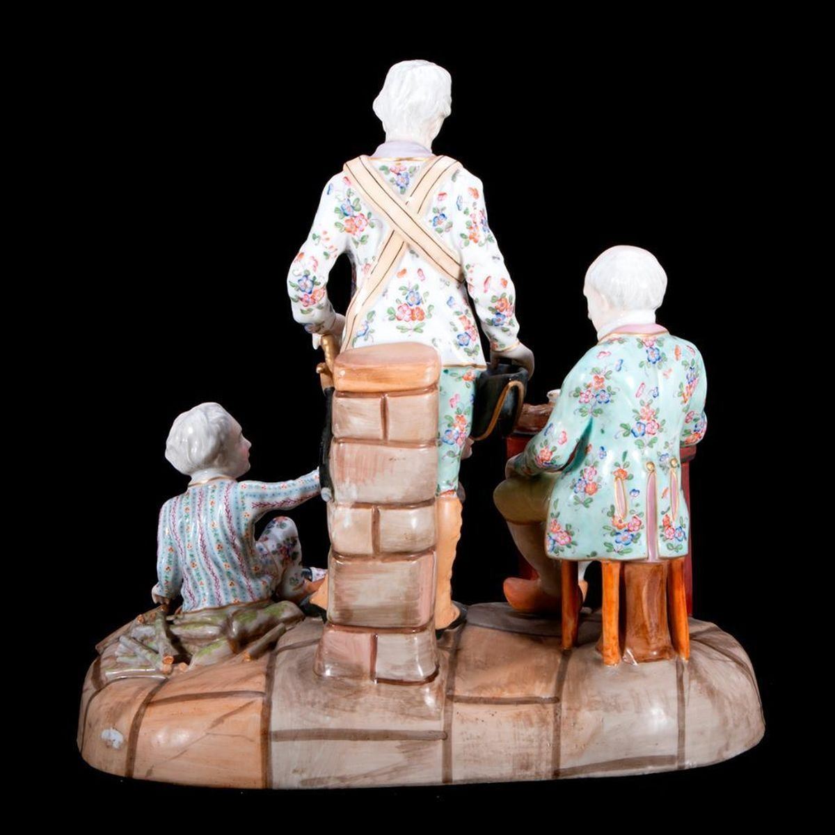 Two Meissen Figural Groups, Boys collecting wood, Boys having a lesson. Largest: H-11", W-11.25", D-7.5". Condition: Some losses