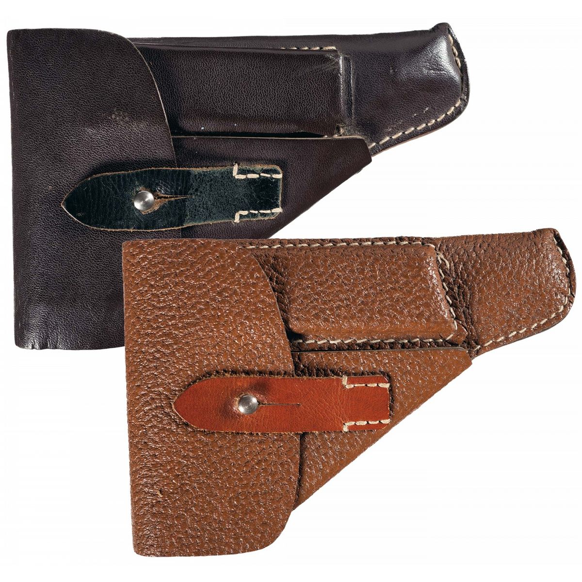 Condition: 1) Unissued. There is some separation of the leather on the inside from flexing and some minor flex cracks on the upper flap, otherwise a few minor scuffs and tight stitching. 2) Unissued. The leather is beginning to separate around the edge of the upper flap, with some flex wear on the inside of the upper flap and tight stitching.