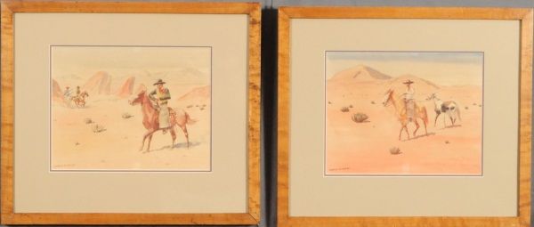 Leonard Reedy (Am. 1899-1956). "Horse for Sale" 9" x 11" and "A Surprise Attack" 9" x 11".