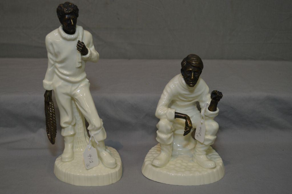 Two MInton bronze and china figures including "Traveler's Tales" MS1 and "The Fisherman" MS13