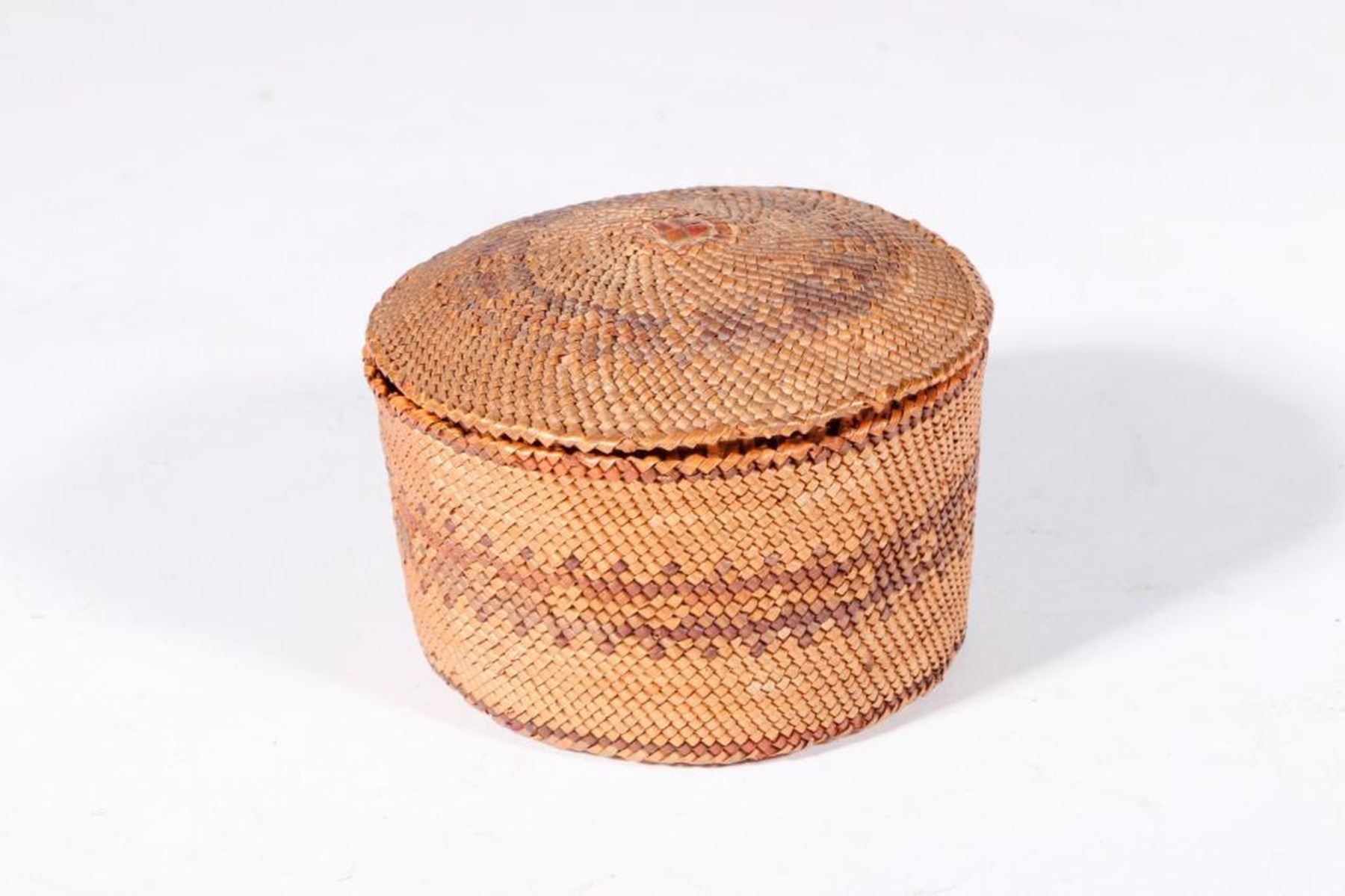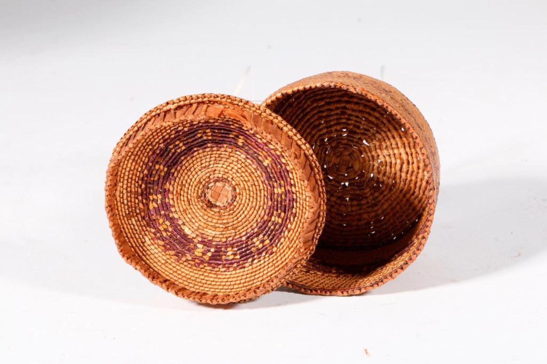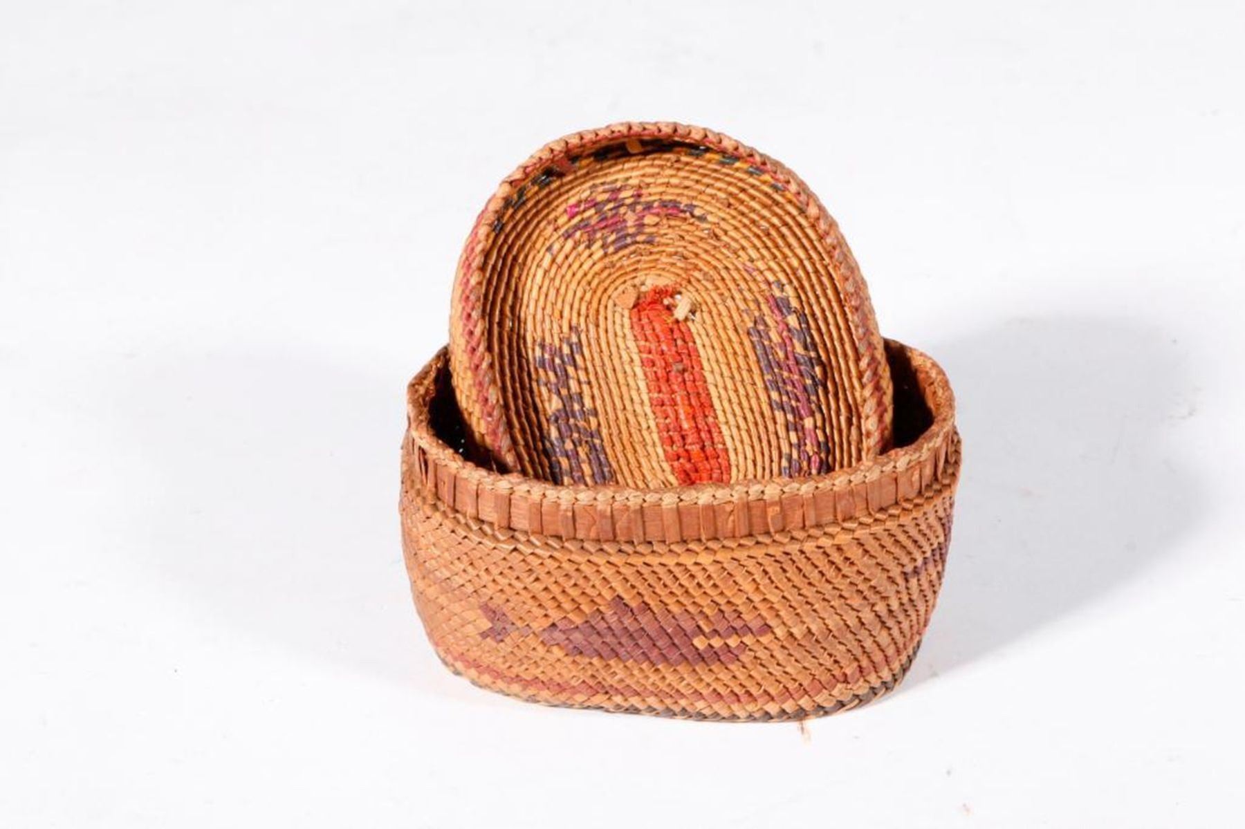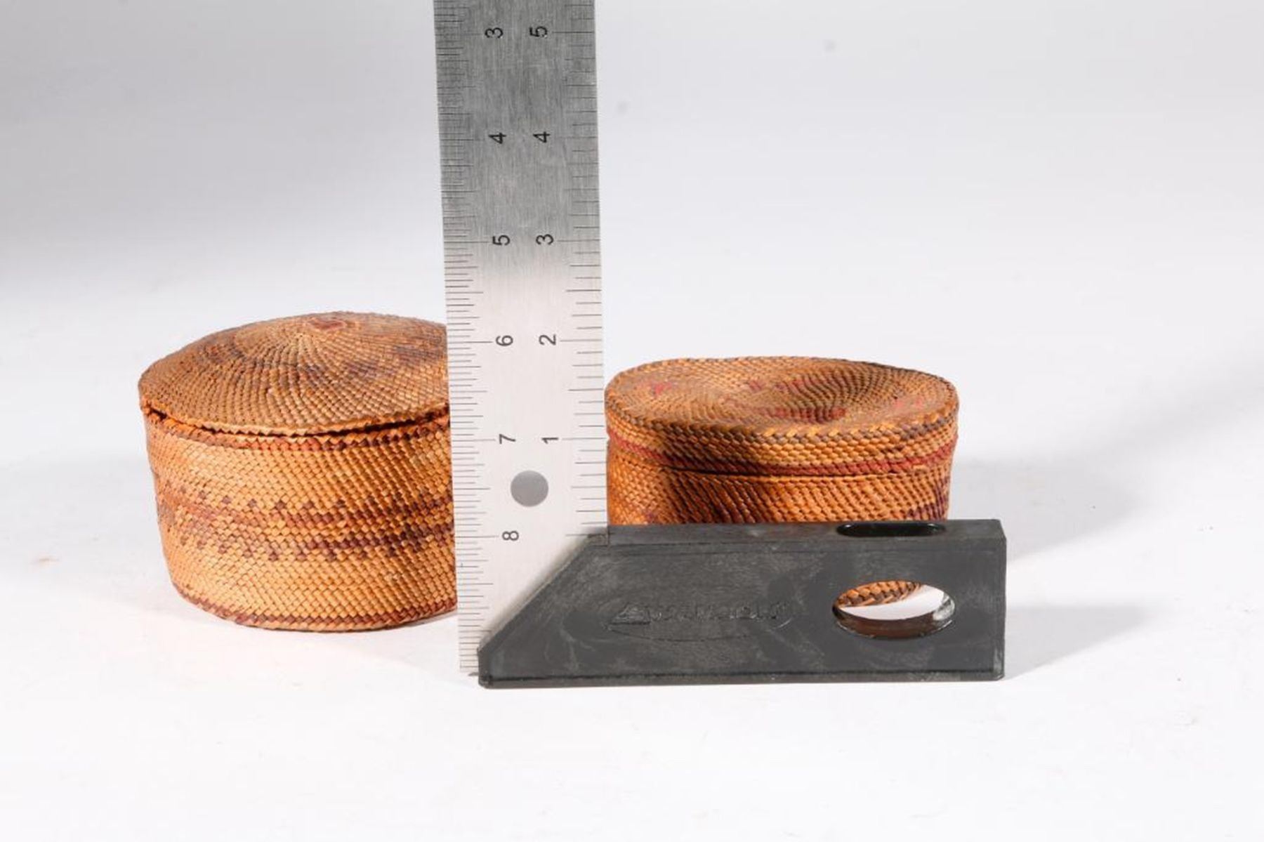 c. early 20th century, polychrome, one with depictions of whales. 3 inches high x 4 diameter and whales 2 inches high x 4 x 3.