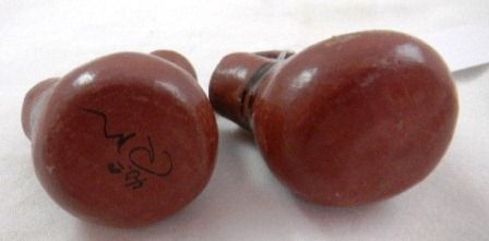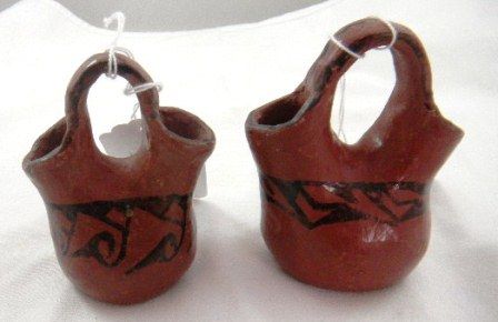 Two Maricopa pottery items. Measuring approximately 3x3 inches. Condition Some minor wear. One pot is signed R.M. Shipping $14.50