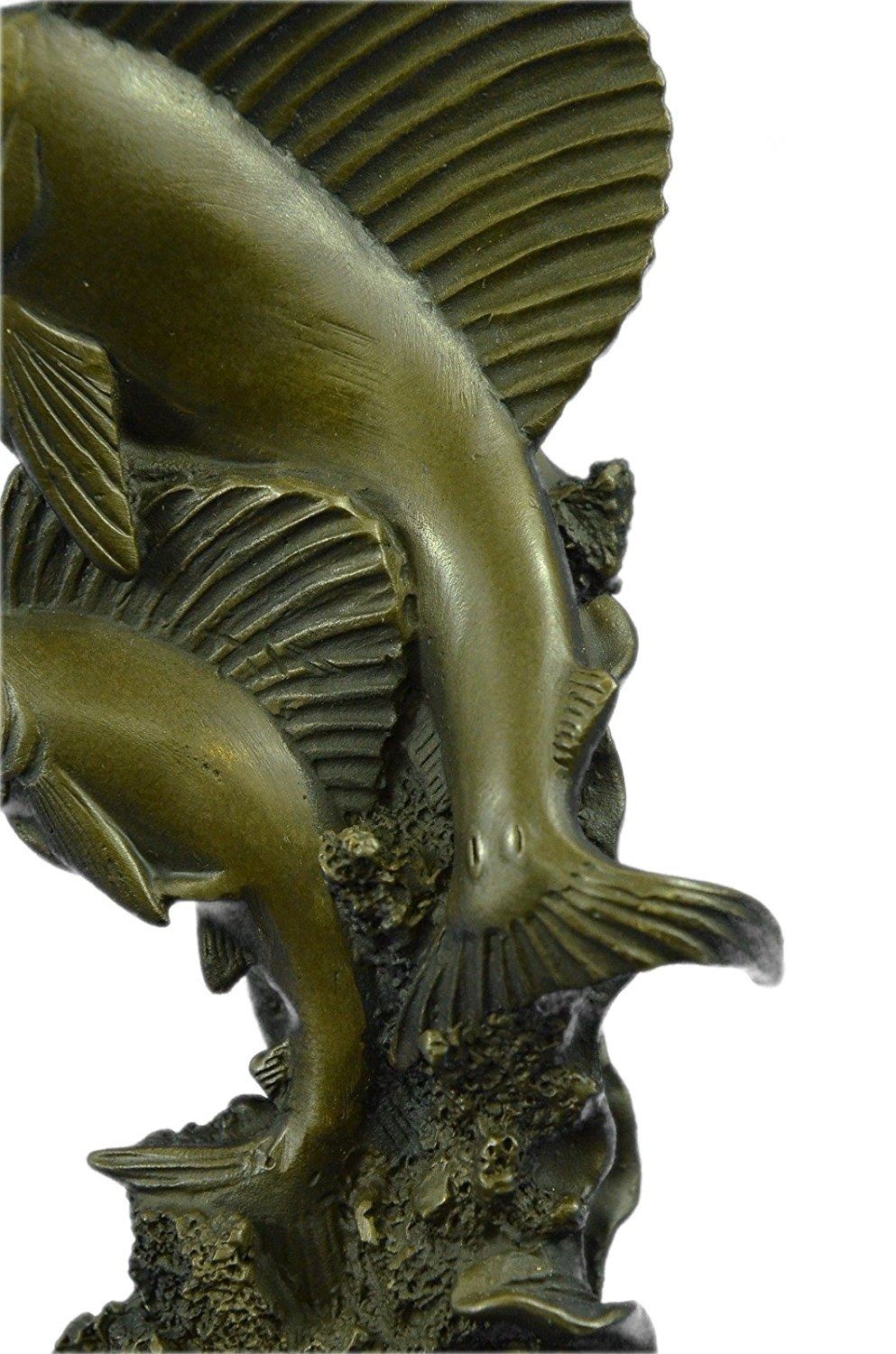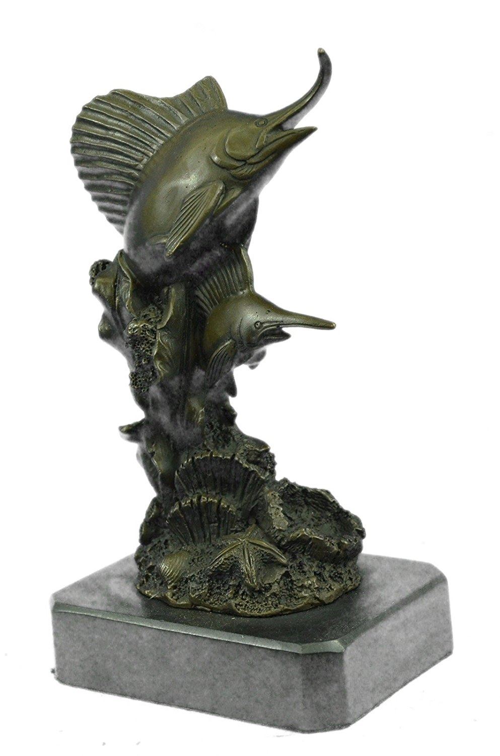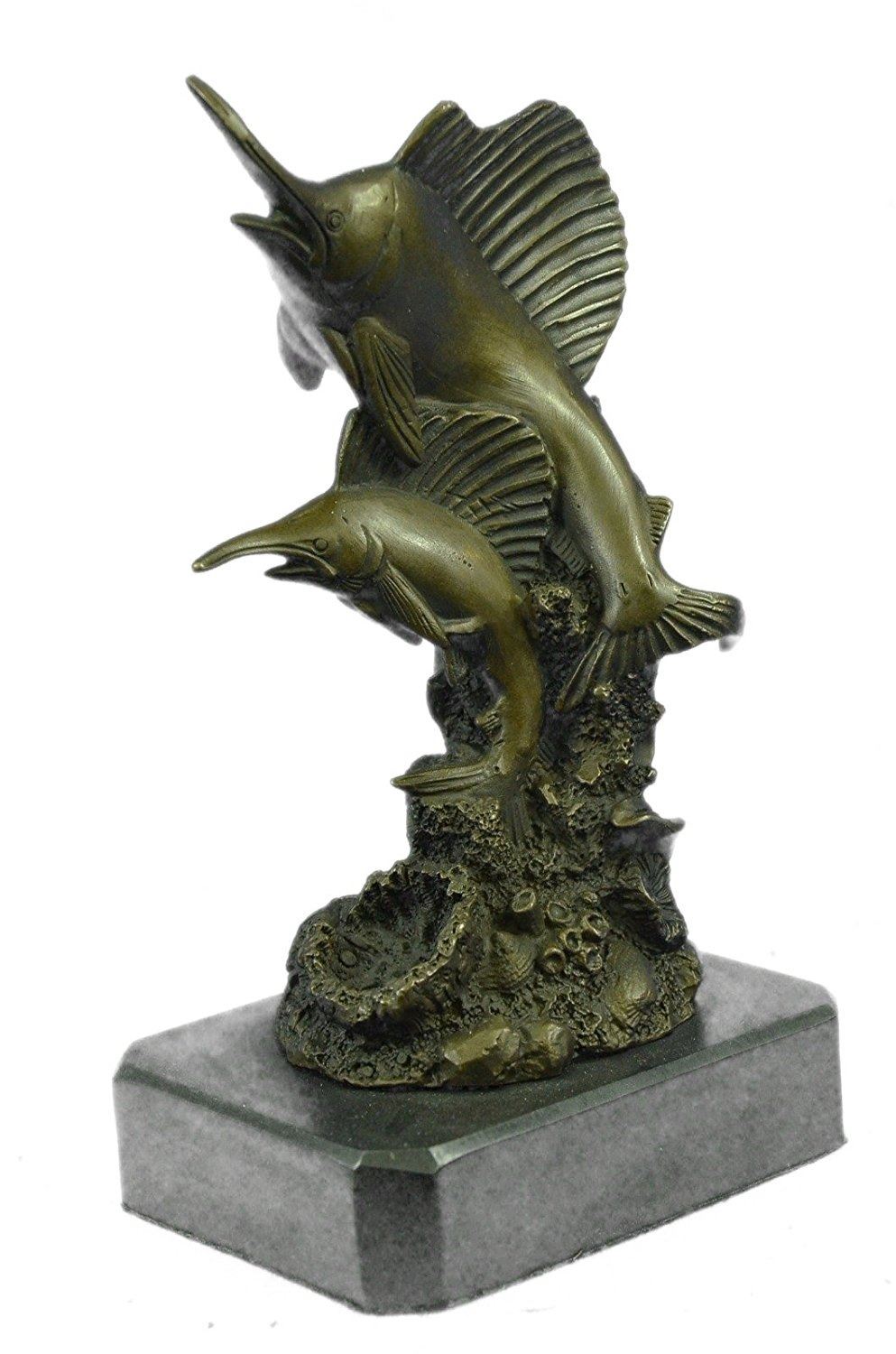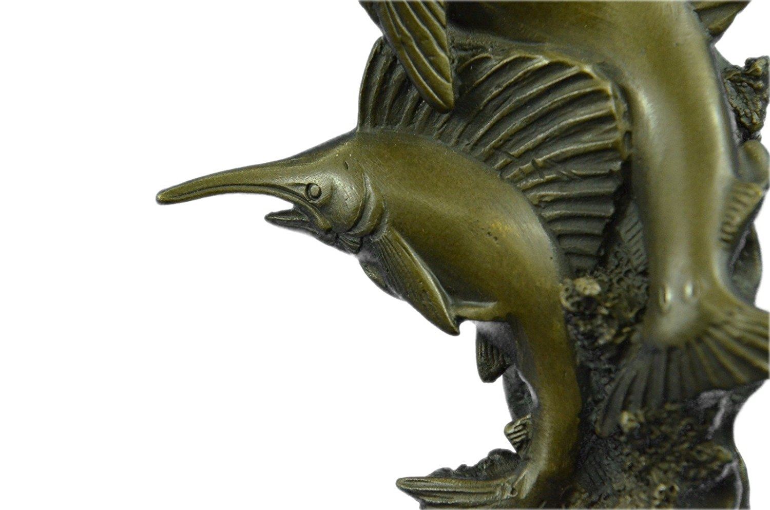 Miniature Bronze Sculpture captures the dazzling beauty and dynamic shape of a blue marlin as it leaves the surface and is, for a brief moment, airborne. This was commissioned by one of collectors, where the blue marlin has been sought after and worshiped for years. We further hopes that such depictions will inspire fishermen to tag and release this now threatened species. This Bronze Sculpture was cast using the Lost Wax Method and mounted on a marble base. Bronze Dimensions with Marble Base: Height 8 X Width 5 inches. Weight: 5 LBS.