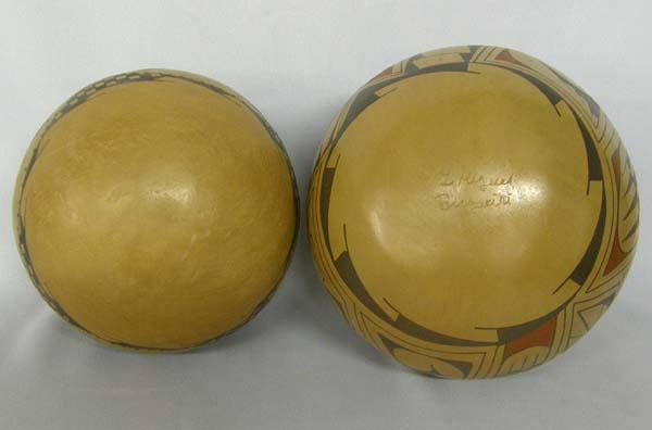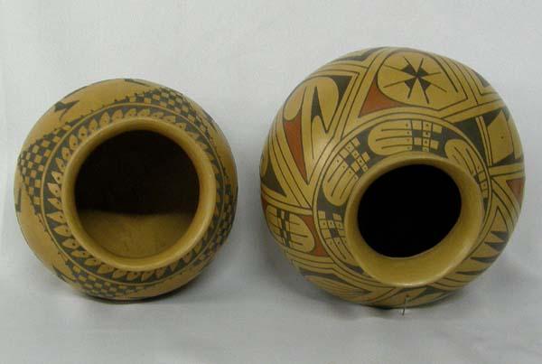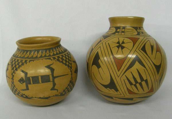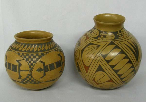 Two Mata Ortiz Pottery by Bugarini and Karen, largest measures 7'' x 7''. SHI $30.