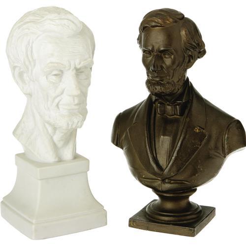 <B>Two Medium-Size Abraham Lincoln Busts.</B></I> The bronze bust is 9.25" tall, 6.25" across the shoulders, and on a 3" x 3" base and exhibits just a bit of minor surface scratching. The porcelain piece is also 9.25" tall and on a 3.75" x 3.75" base and in excellent condition.<BR><BR><b>Shipping:</b> Miscellaneous Collectibles, Larg (<a target="_blank" href="http://www.heritageauctions.com/common/shipping.php">view shipping information</a>)