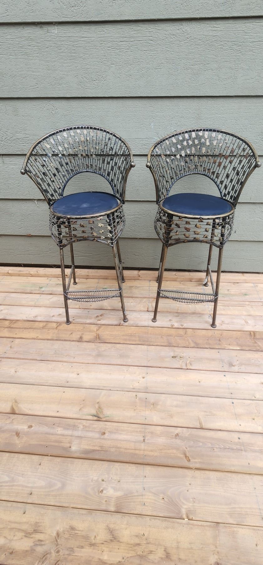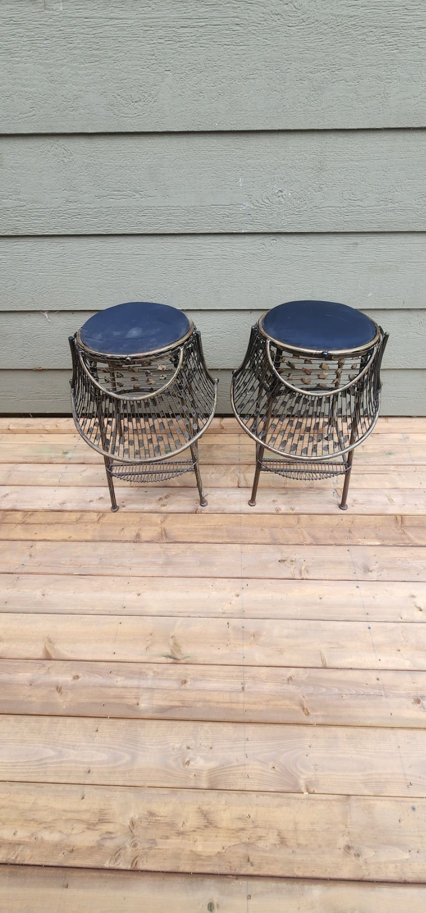 Two Metal Bar Stools with Fold away Back