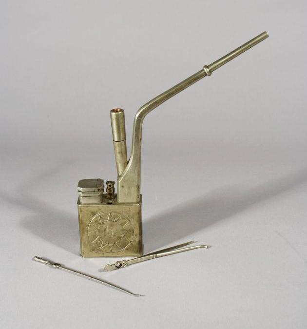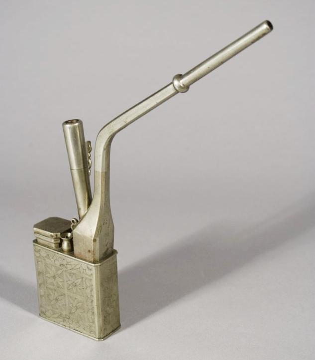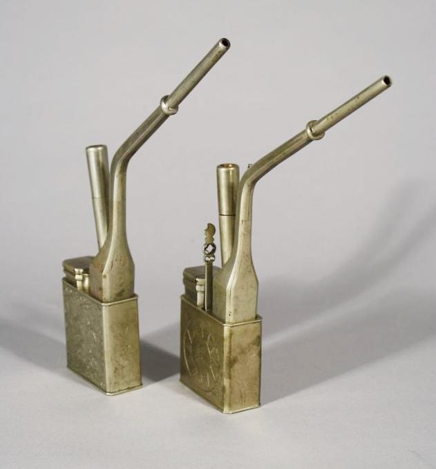 Two Metal Opium Pipes With Etched Designs.