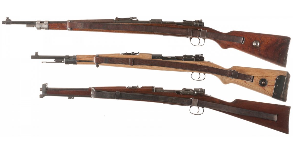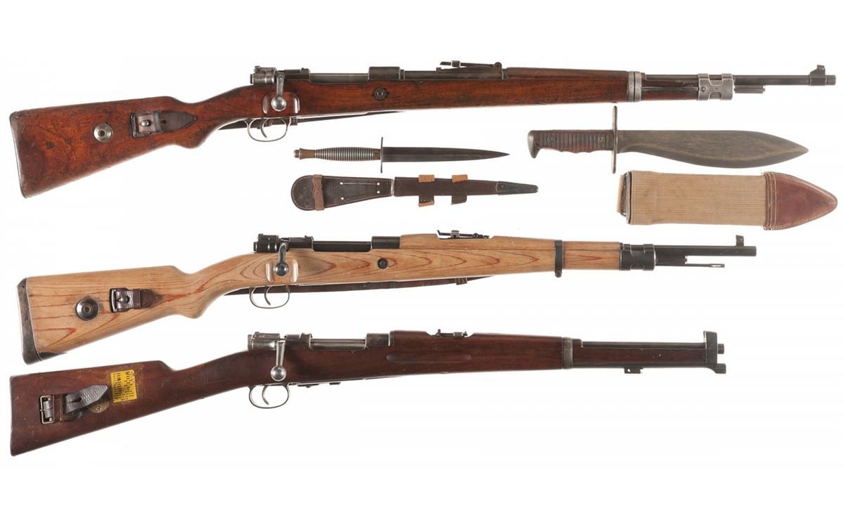 Two Military Bolt Action Carbines, One Rifle, and Two Fighting Knives