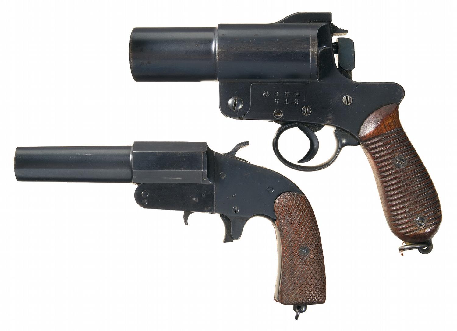 Two Military Flare Pistols -A) Japanese Type 10 Single Barrel Flare Pistol B) Russian Single Ba