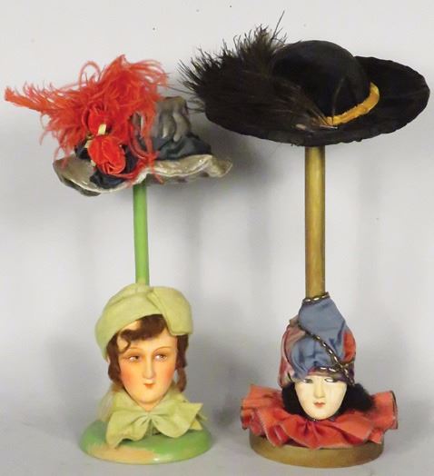 Two Millinery Hat Stands come with two doll, miniature hats.