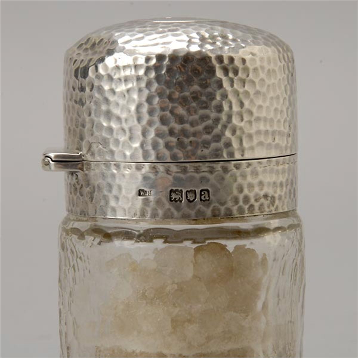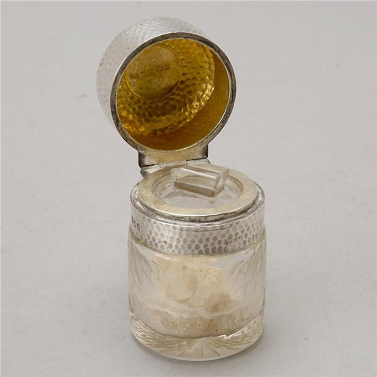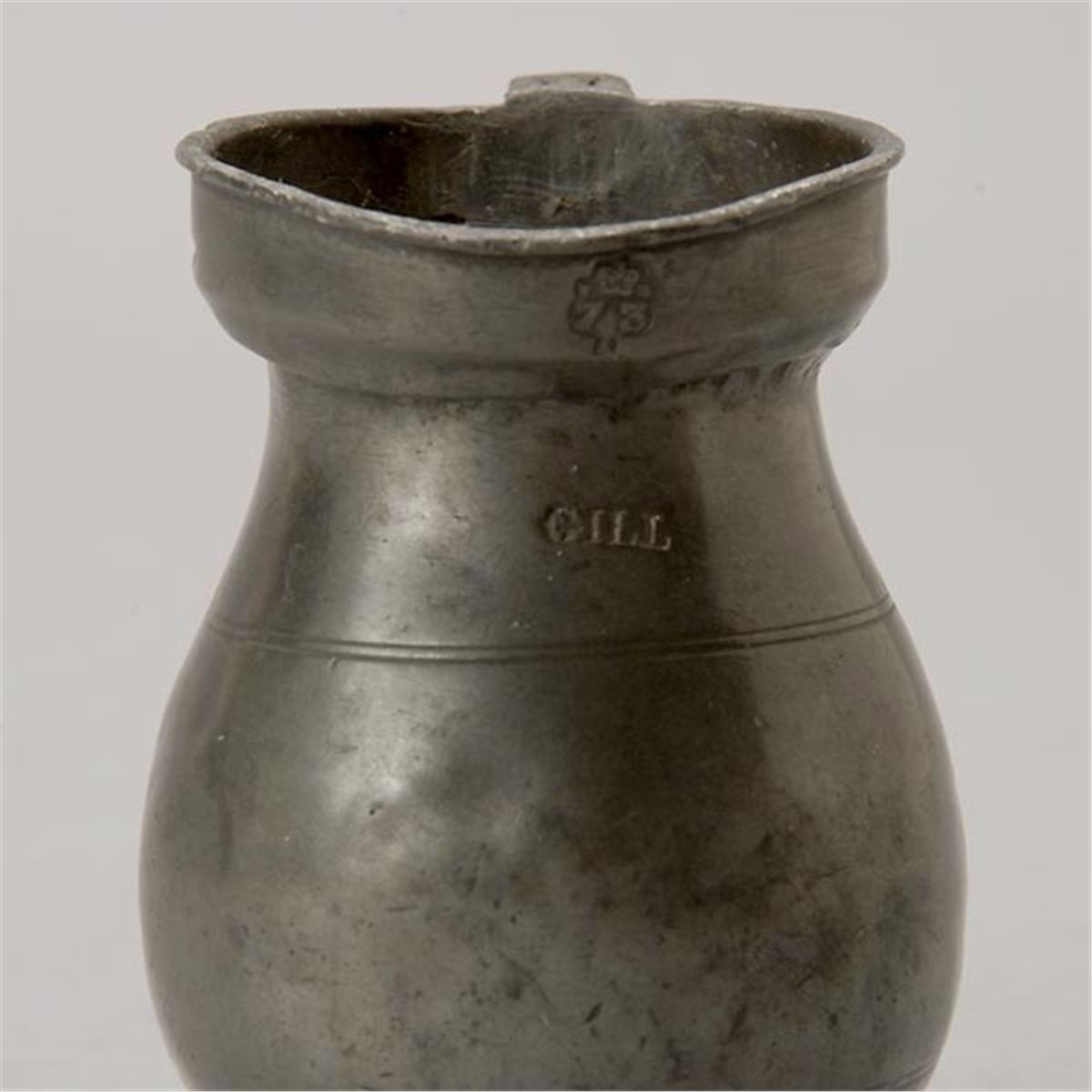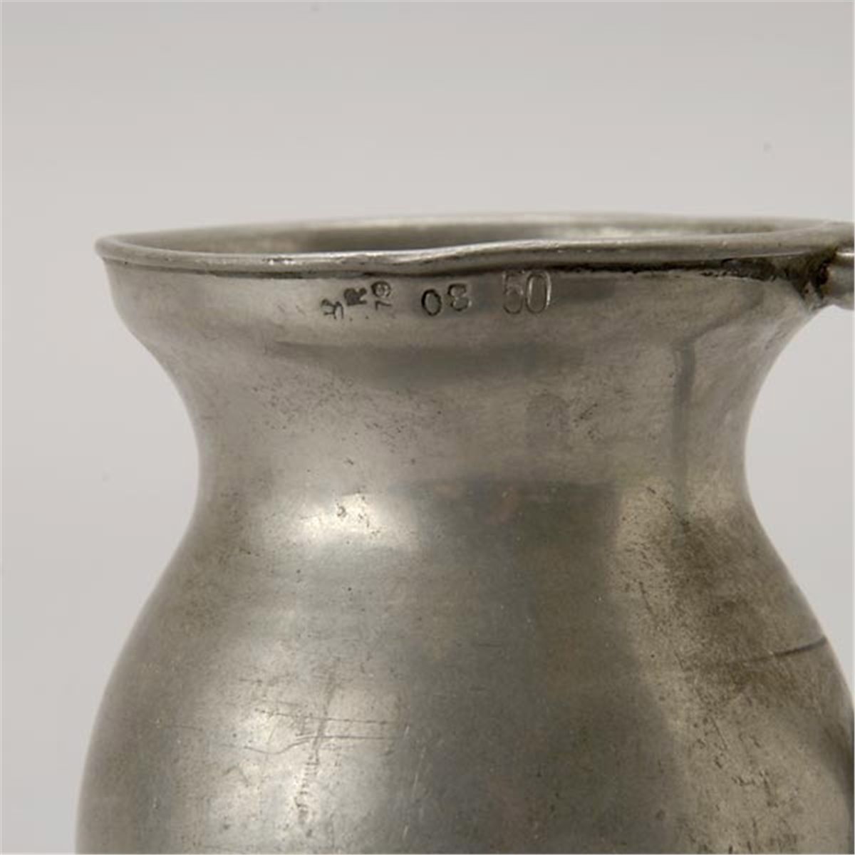 Two Miniature Scottish Pewter Mugs; together with a silver mounted dresser jar (3) {Height of jar 3 1/4 inches}