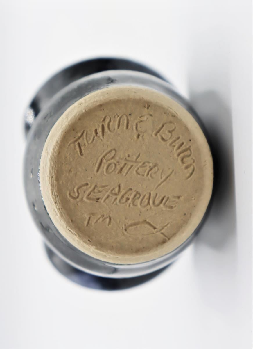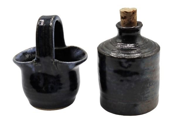 Two Miniatures, basket is made by TM at Turn+Burn pottery and signed on bottom with the Fish (peace symbol).