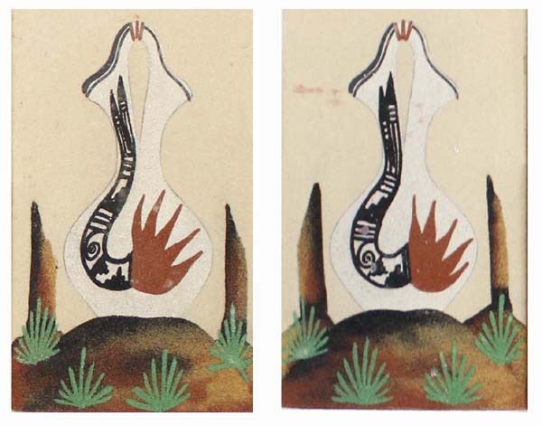 Two Native American Sand Paintings, by R. Sloan. 2 measure 6" x 12", 2 measure 12" x 12".