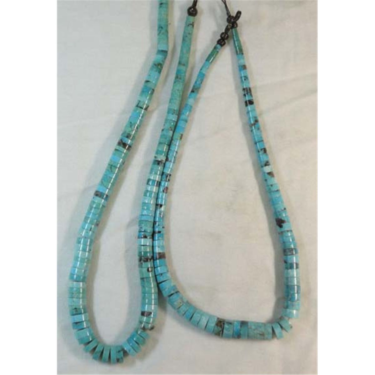 Two Native American Turquoise Necklaces. One measures 16 long and the other measures 18" long.Looks like pic on pg 143 in  Fine Jewelry of the Southwest by Tisdale. That one dates in the 1940's. These two came from an estate where all the  Native American jewelry was purchased in the 50's & 60's."