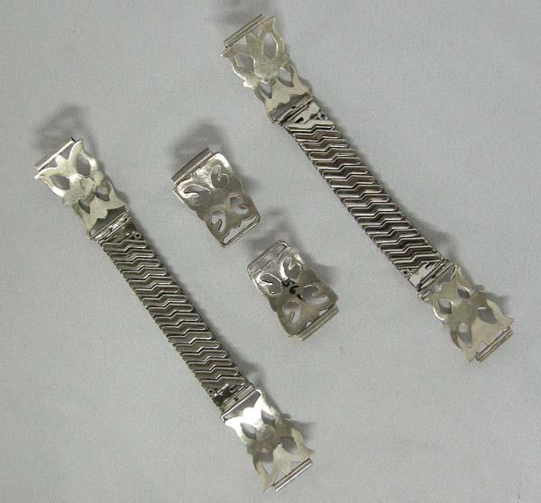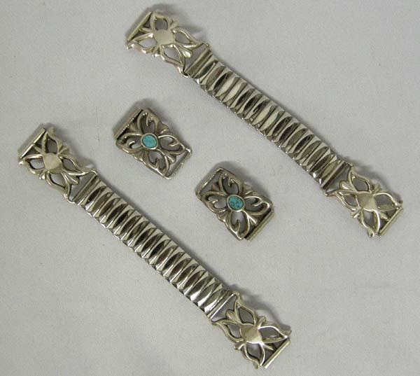 Two Navajo Sandcast Silver Watchbands One Pair Watchtips, measures approx. 6''. SHI $15.