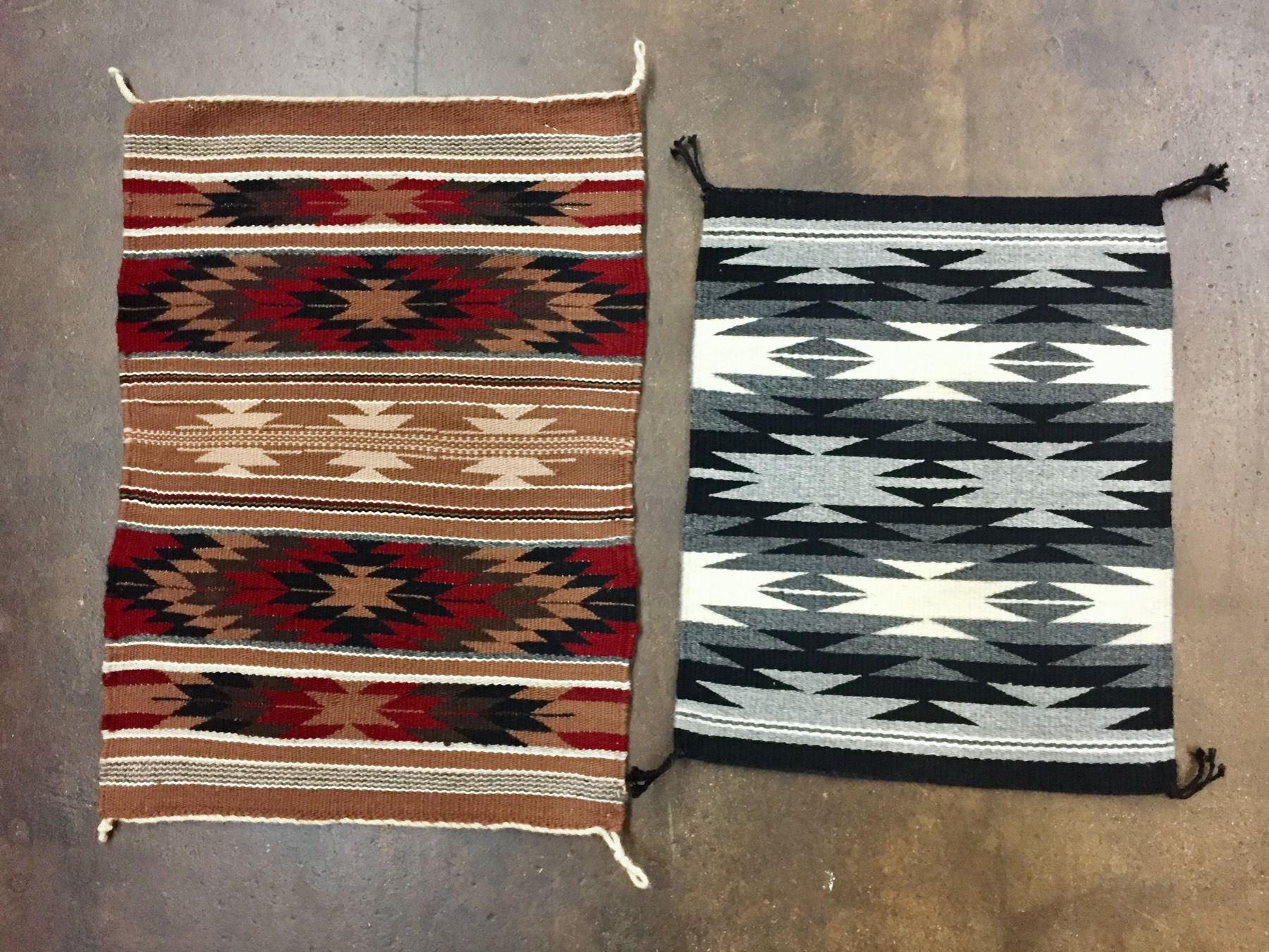 Description: Offered for sale in this lot are two beautiful little Navajo textiles. Maker: One has a tag that says, Samantha Yazzie, the other is by an unknown Navajo Weaver. Approx. Age: Modern. Size: Smaller. Condition: Good for their age, normal wear expected. Please look closely at the pictures - they are an important part of our description. Shipping: There will be a $7 handling, packaging fee for shipping this lot. The actual cost of postage will be added on top of that.