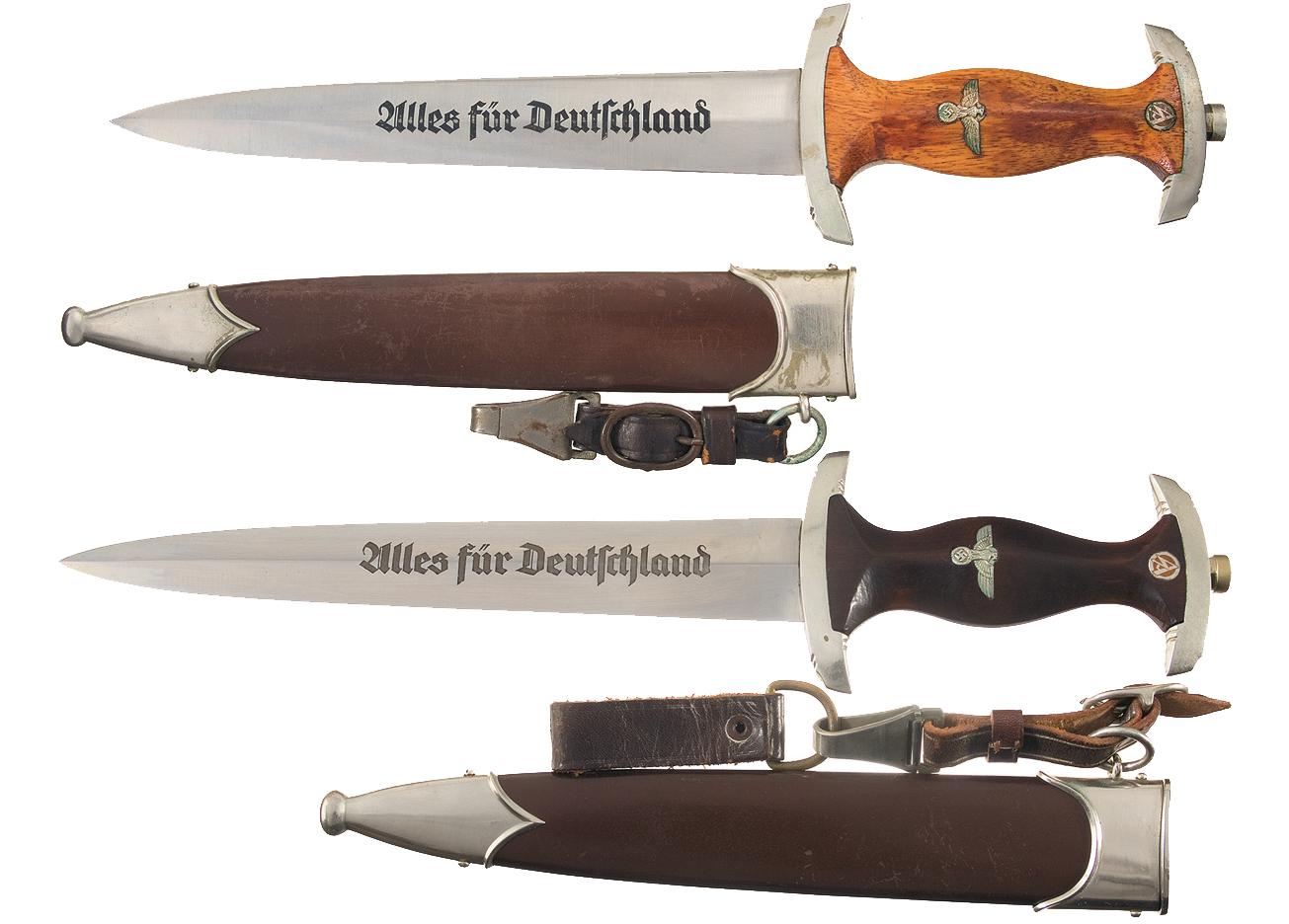 Two Nazi SA Daggers with Sheaths, Hangers and a Portapee
