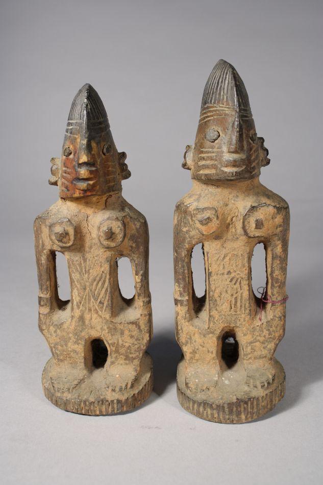 Two Nigerian Yoruba Ibeji Carved Wooden Figures.