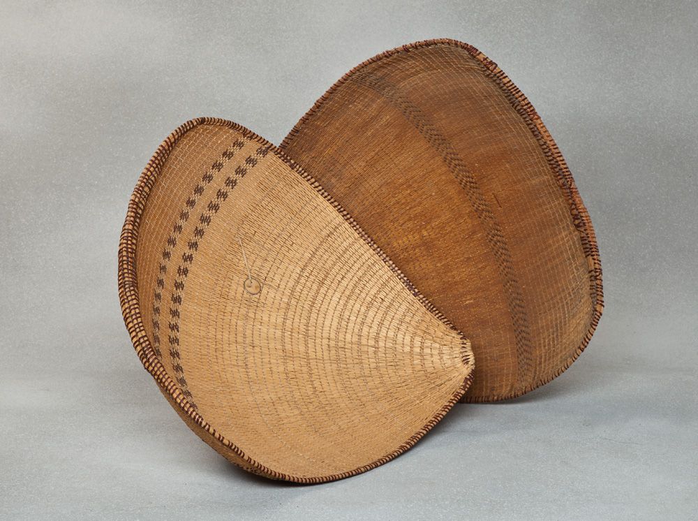Both 21” x 20” with horizontal bands, made from native material. Fine condition, circa 1920s.