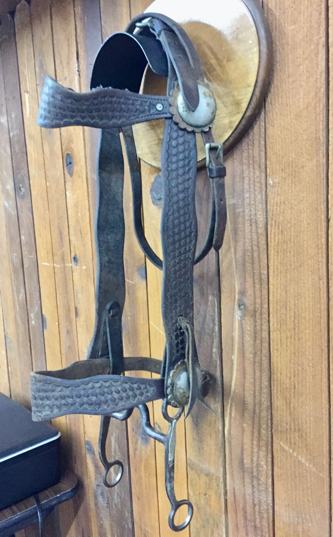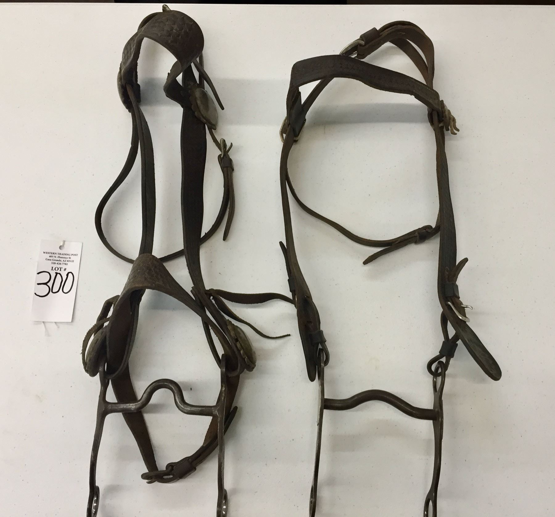 Description: For sale in this lot are two older, heavy duty, tooled leather “Cowboy” headstalls. The bits seem to be unmarked, but appear to be old Crockett or Kelly style bits. Maker: Various. Approx. Age: Circa early to mid-1900s. Size: Mouth measures 5 inches with a 7-1/2 inch shank. Mouth measures 5 inches with a 7-1/2 inch shank. Condition: Pretty good for their ages, wear and aging expected. Please look closely at the pictures - they are an important part of our description. Shipping: There will be a $8 handling, packaging fee for shipping this lot. The actual cost of postage will be added on top of that.