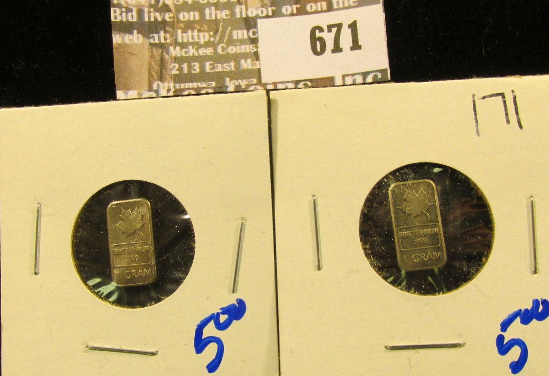 Two One Gram Titanium Ingot Bars With The Canadian Maple Leaf On Them