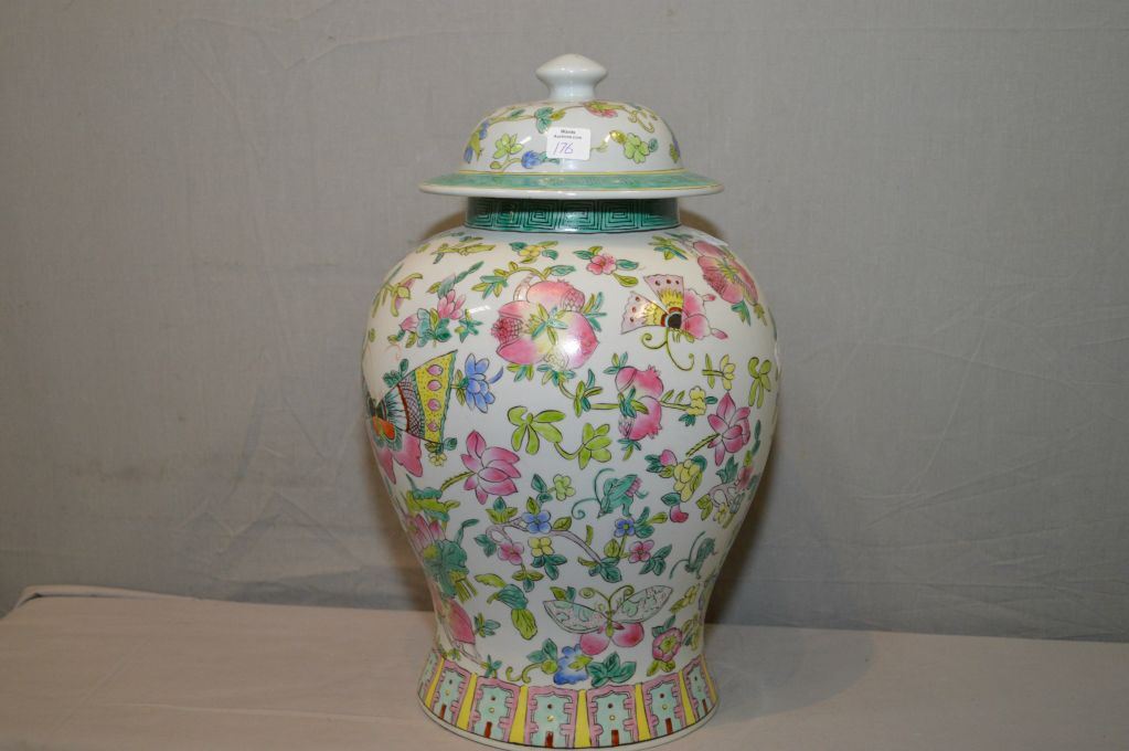 THIS ITEM IS NOT AVAILABLE FOR SHIPMENT. LOCAL BIDDERS ONLY. Two Oriental pieces including lidded jar and ginger jar style vase
