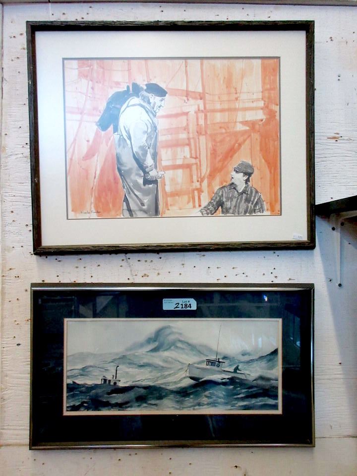Workmen is 25 x 20" framed and Fishing Boat  is 25 x 14" framed.